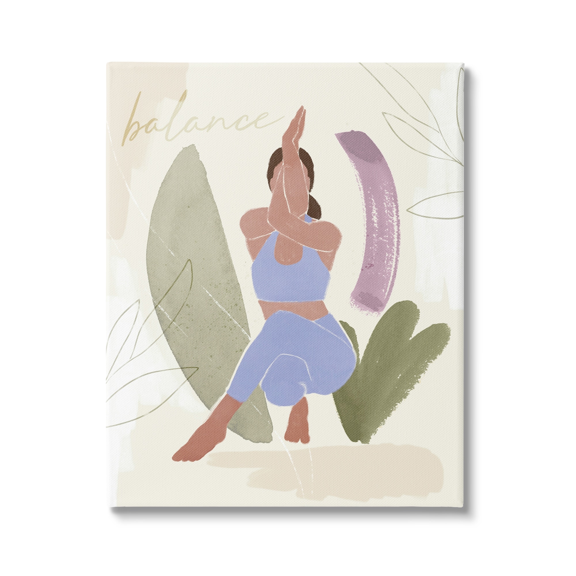 Stupell Industries Balance Text Yoga Fitness Person Botanical Brushstrokes Canvas Wall Art