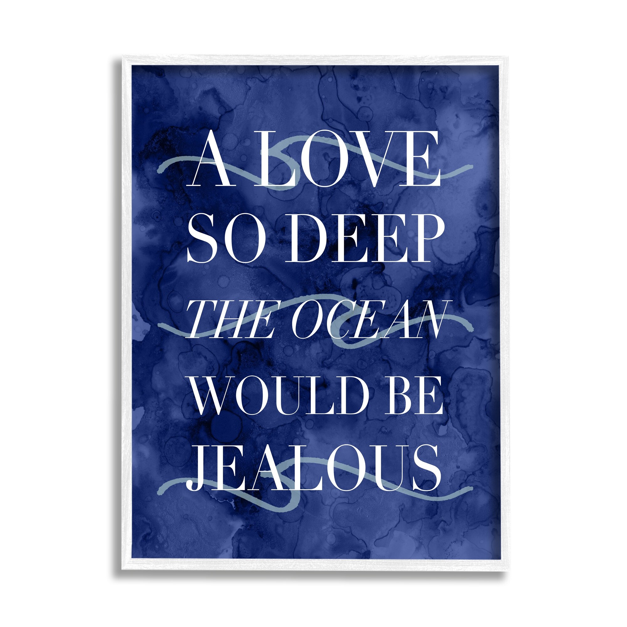 Stupell Romanic Ocean Love Serif Text Watery Background Framed Wall Art, Design by Daphne Polselli - Blue