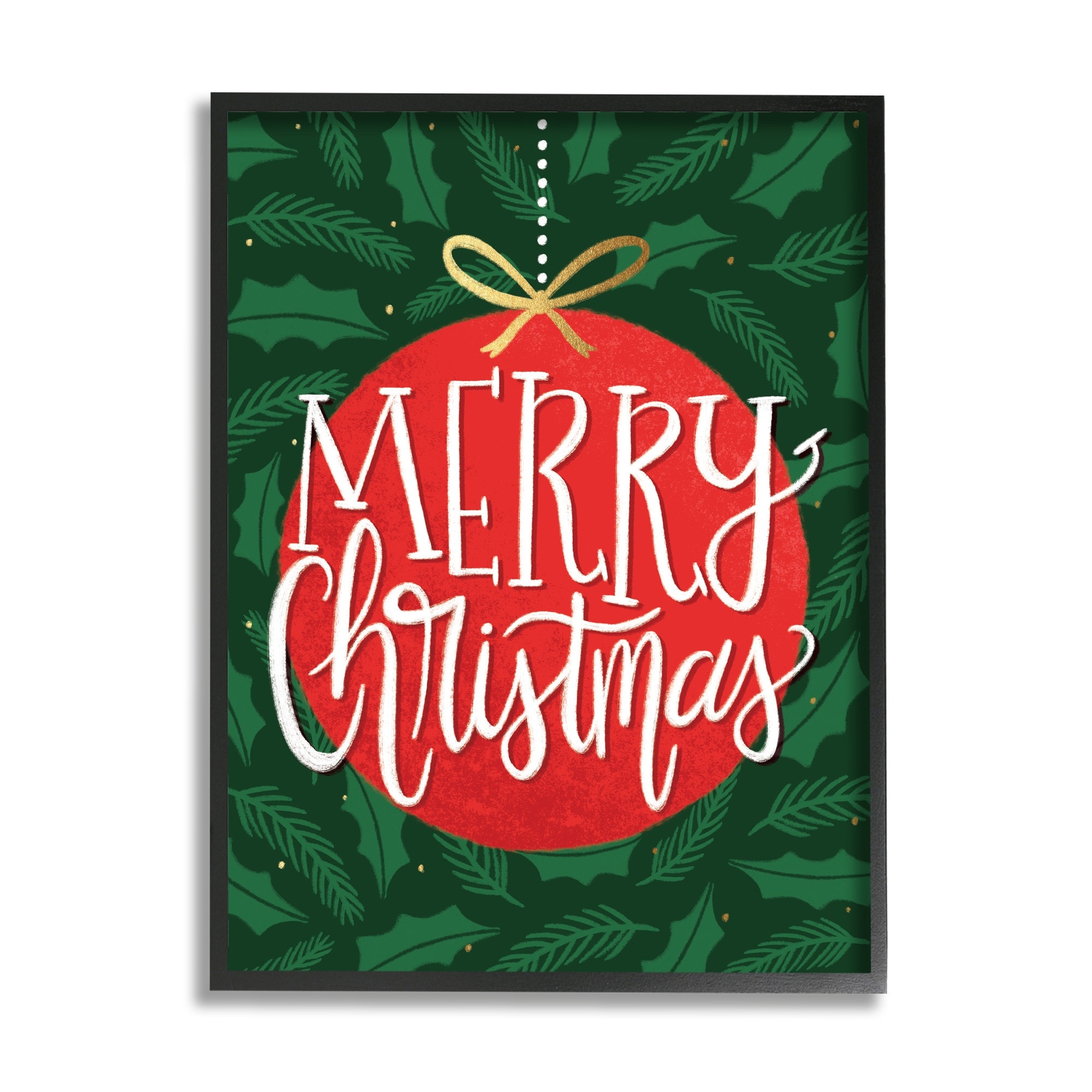 Stupell Industries Festive Merry Christmas Text Red Ornament Framed Wall Art