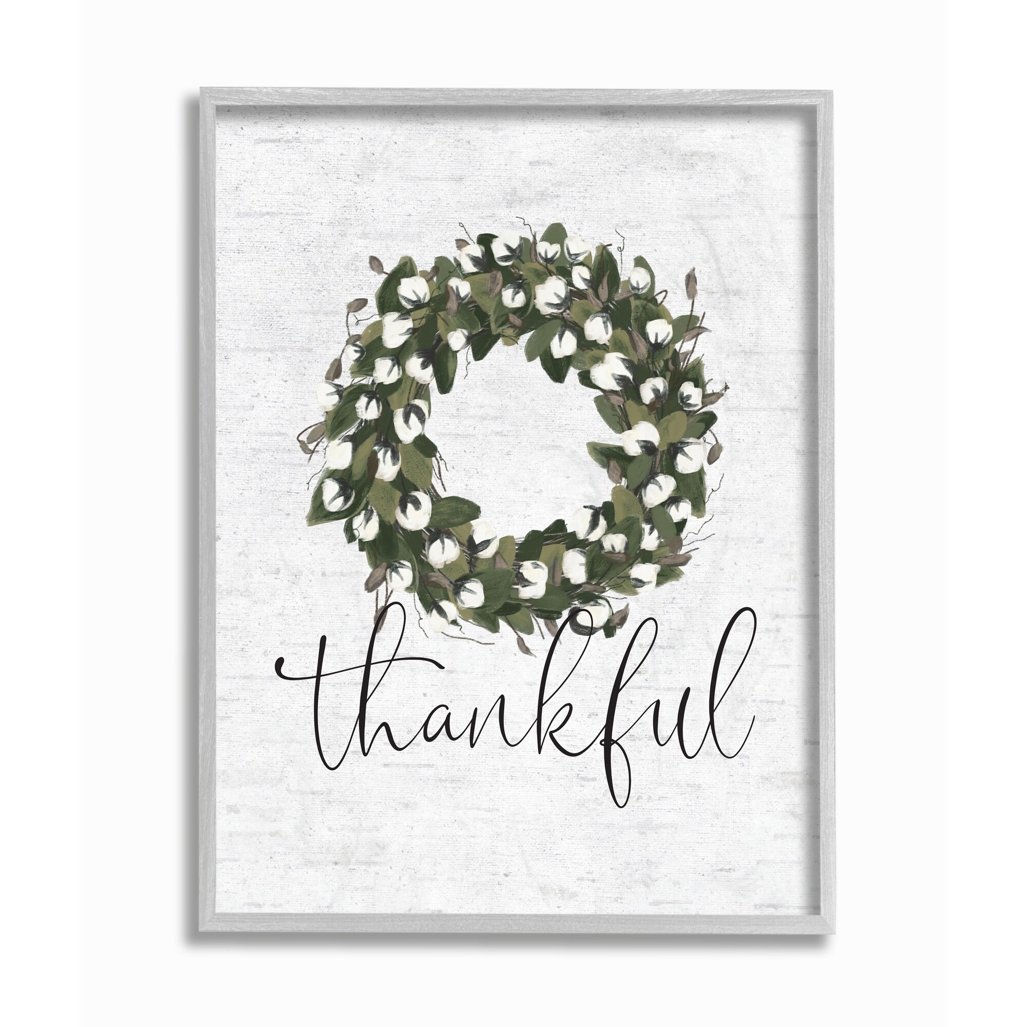 Stupell Cotton Flower Country Style Wreath with Thankful Text Framed Wall Art - Green