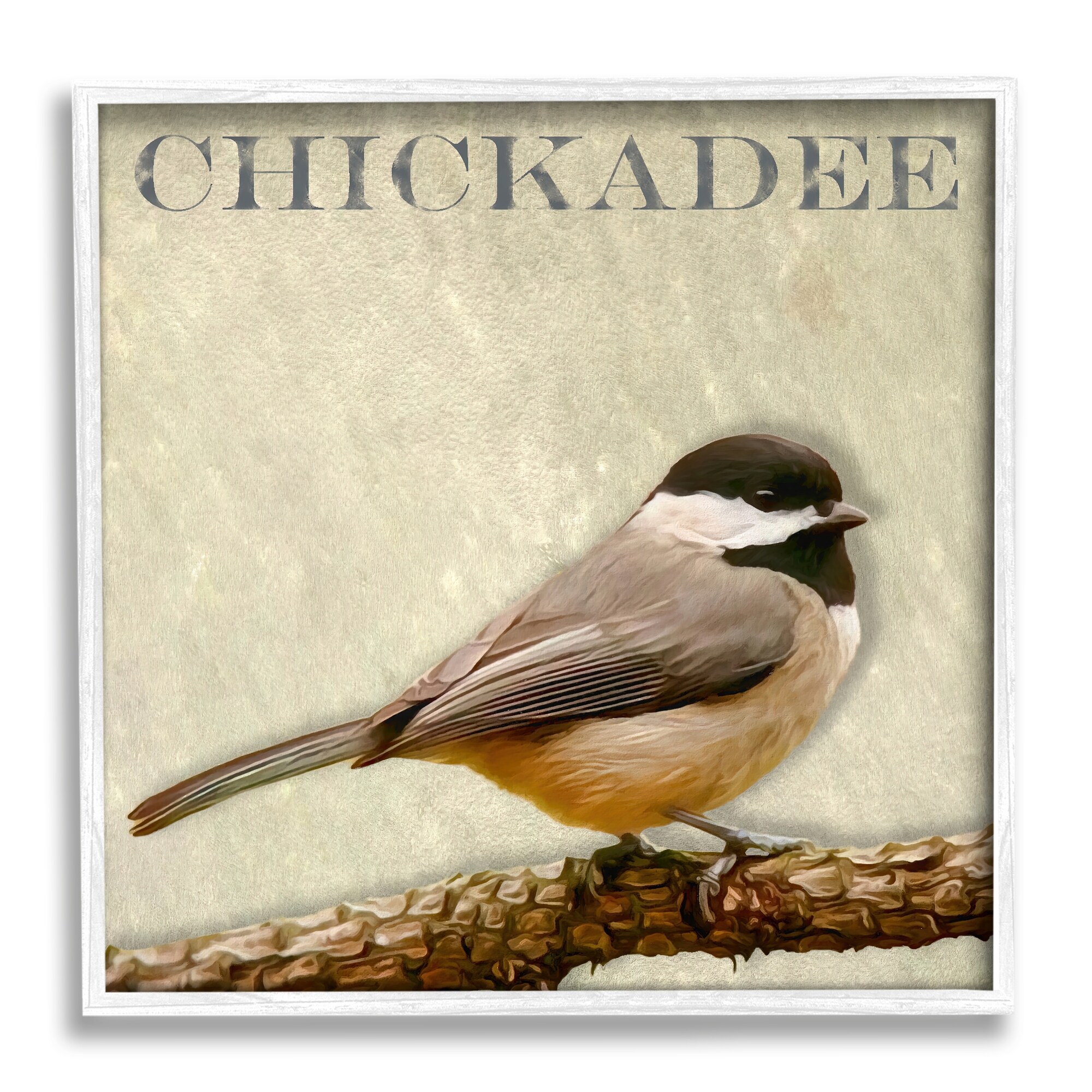 Stupell Chickadee Bird Tree Branch Text Illustration Framed Wall Art - Tan