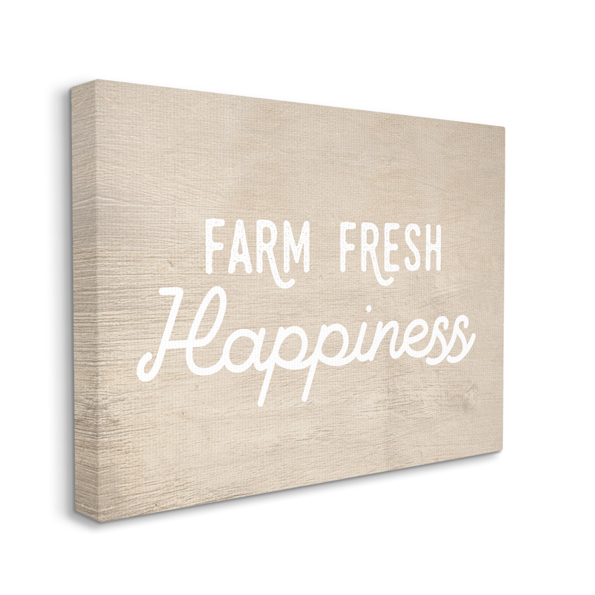 Stupell Industries Farm Fresh Happiness Phrase Text over Rustic Pattern Canvas Wall Art - Tan