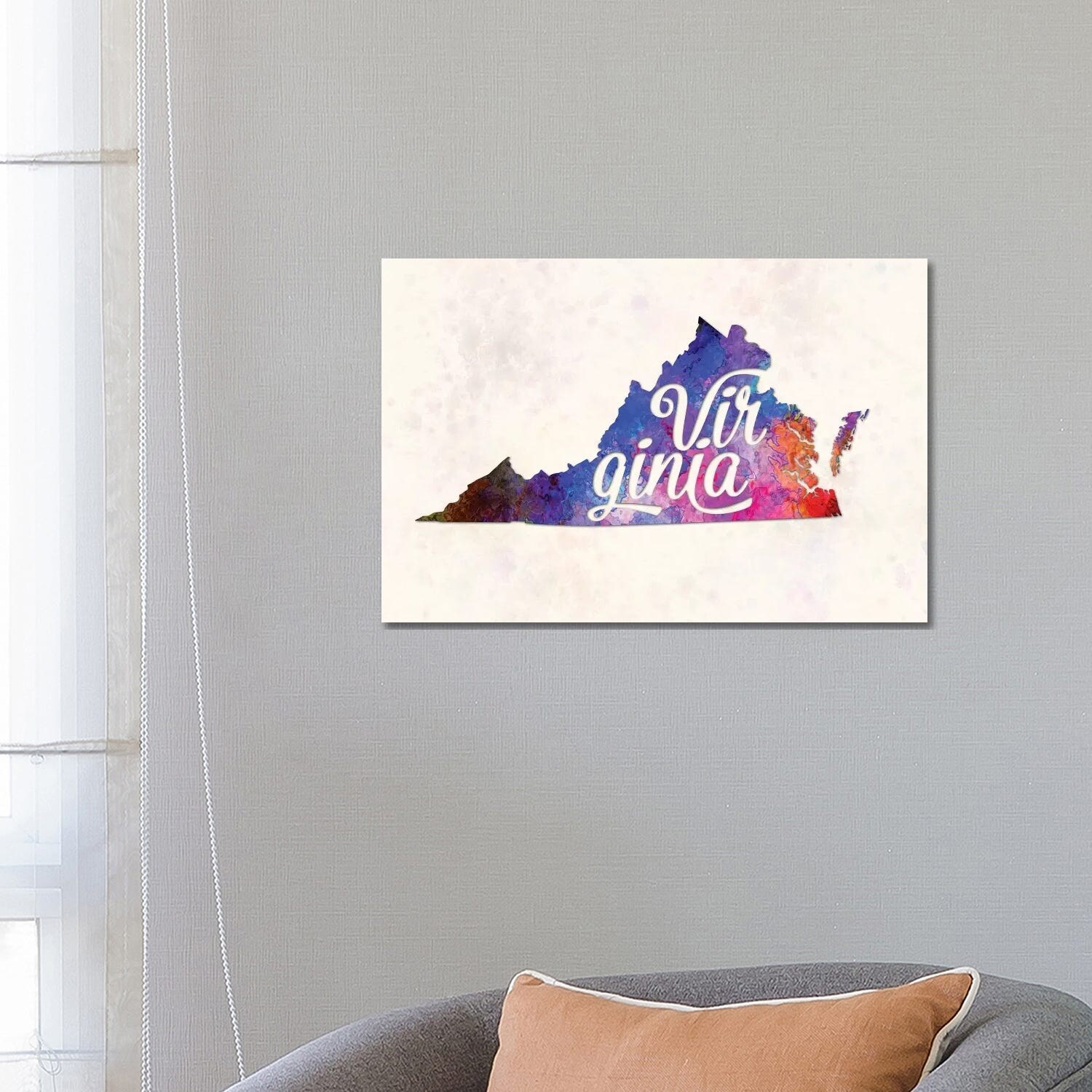 iCanvas "Virginia US State in Watercolor Text Cut Out" by Paul Rommer Canvas Print