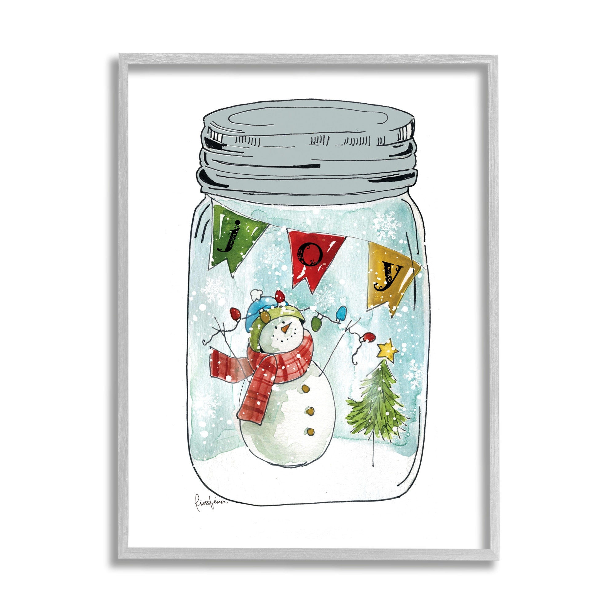 Stupell Joy Text Snowman Christmas Tree Lights Country Jar Framed Wall Art - White