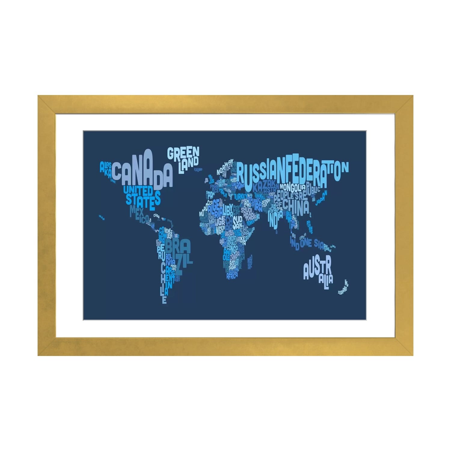 iCanvas "Typographic Text World Map IV (Blue)" by Michael Tompsett