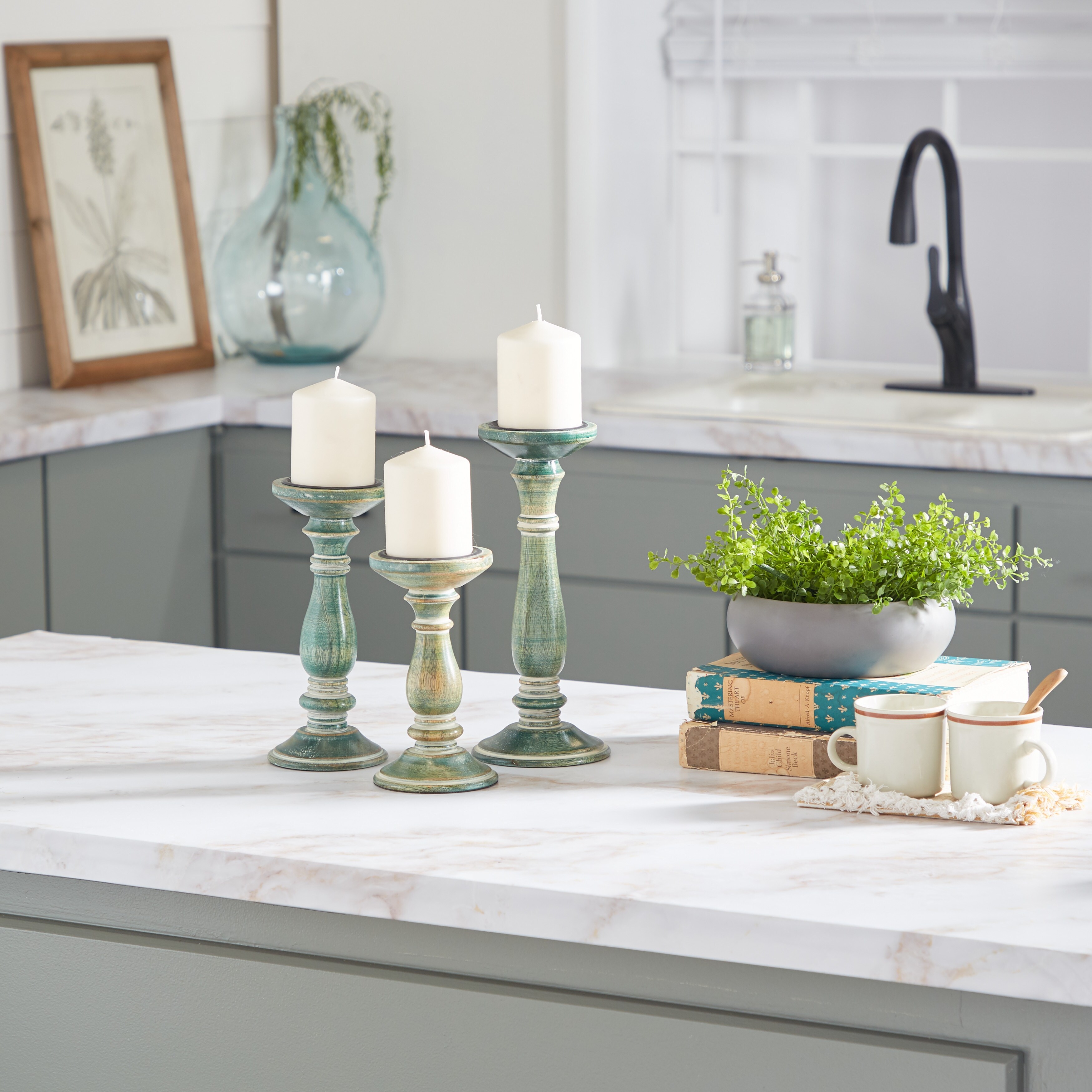Green Wood Farmhouse Candle Holder (Set of 3) - 4 x 4 x 8