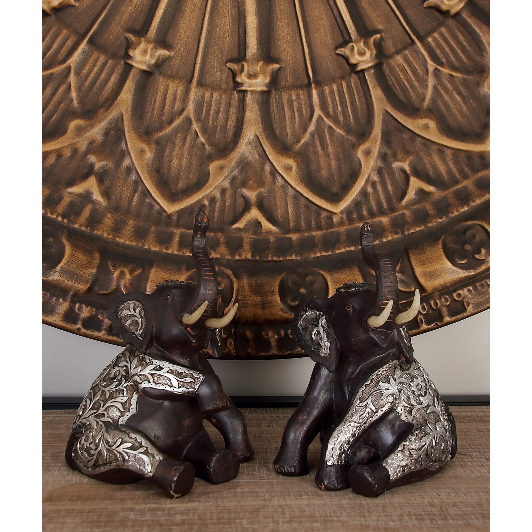 Brown Polystone Eclectic Sculpture Elephant (Set of 2) - 5 x 6 x 7