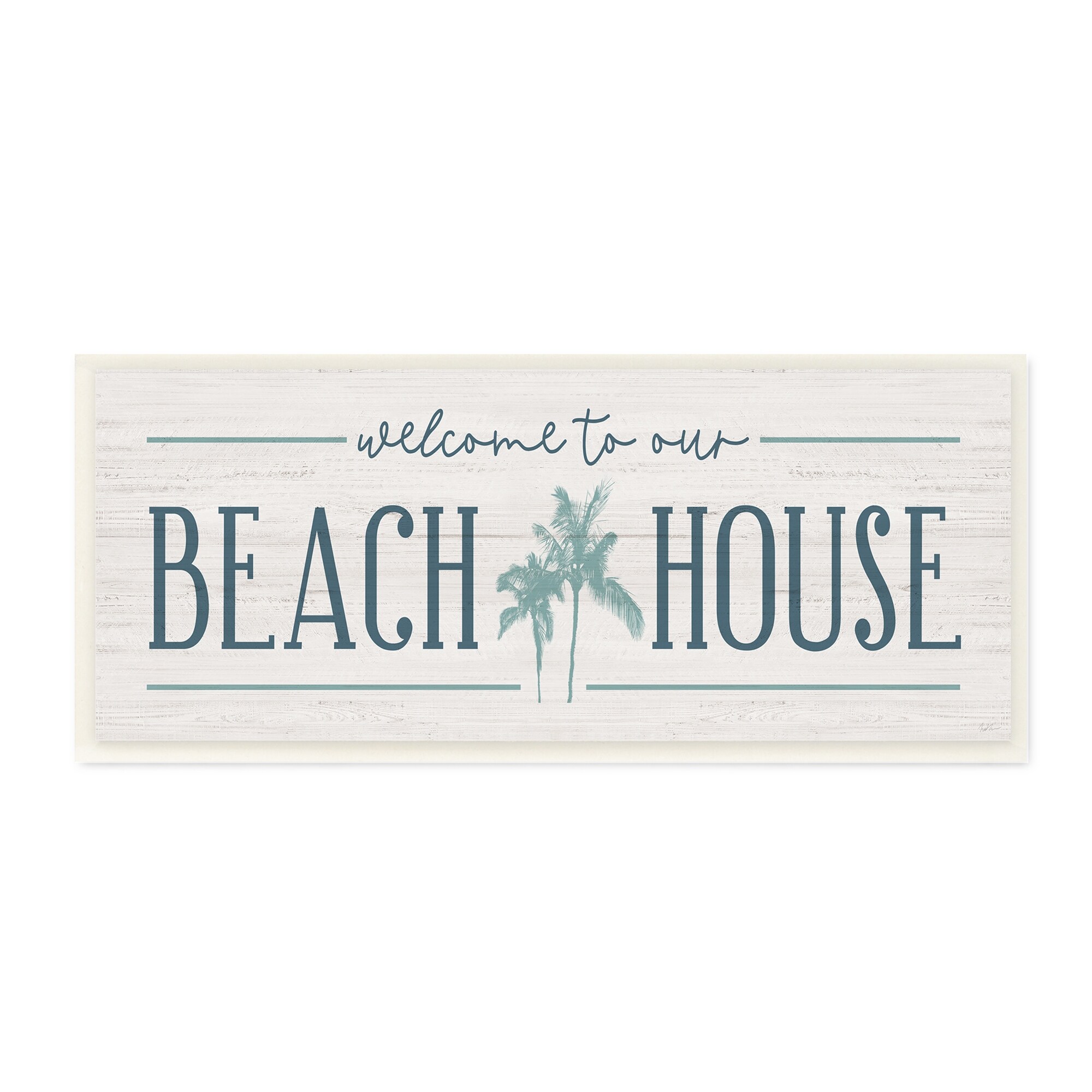 Stupell Industries Welcome to Beach House Sign Blue Palm Trees Wood Wall Art, 17 x 7 - Green