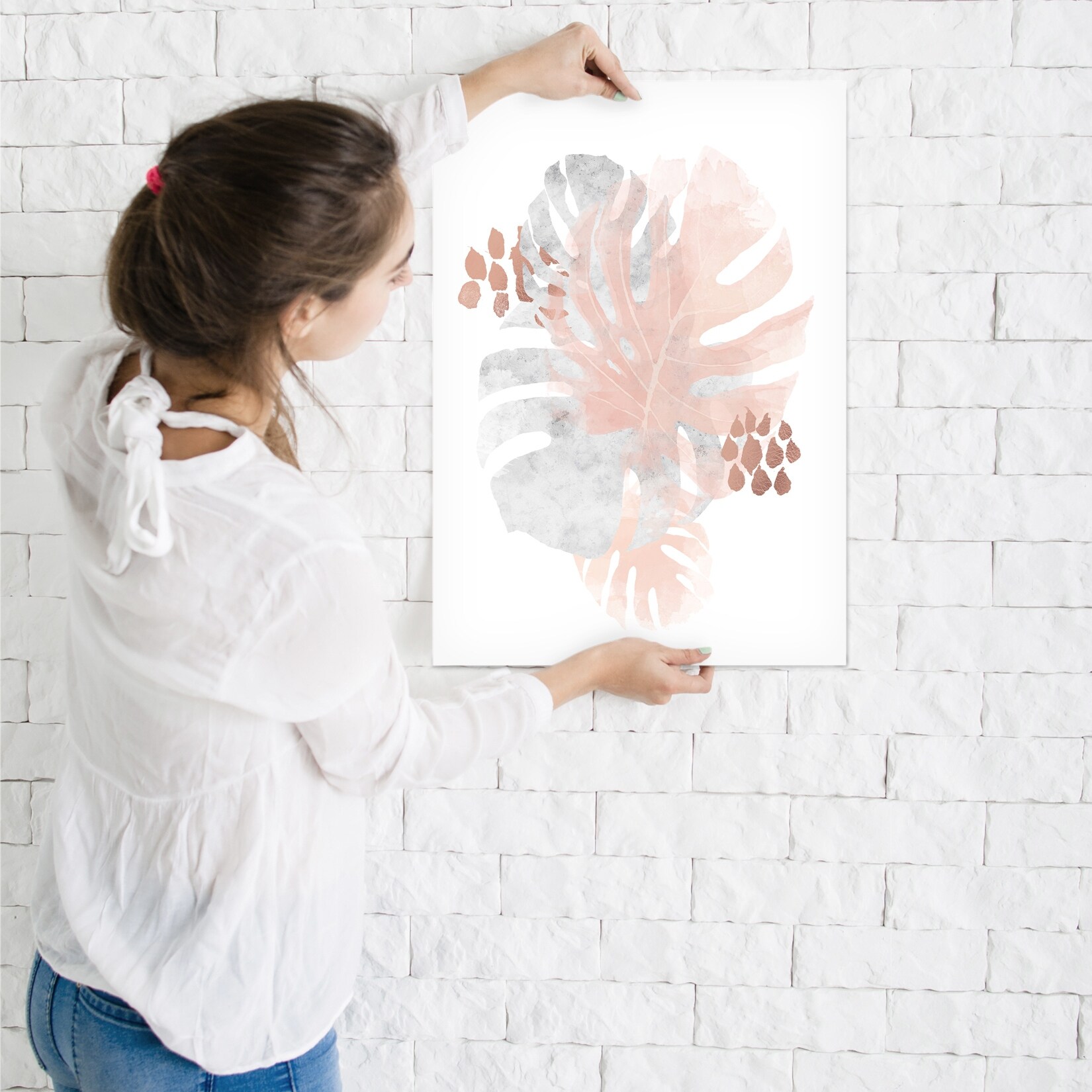 Americanflat - Abstract Monstera Copper 1 by Wall + Wonder - 16"x20" Poster Art Print