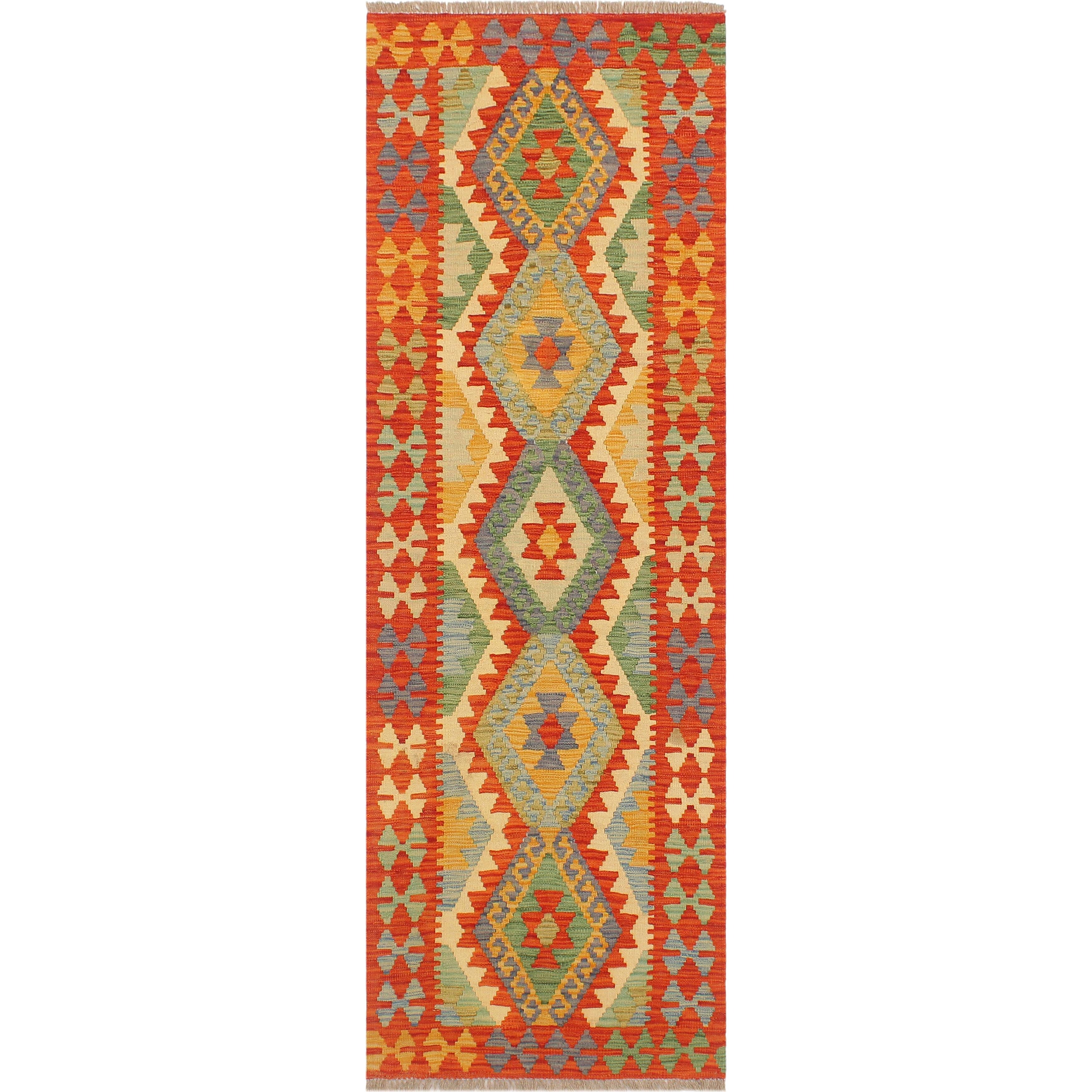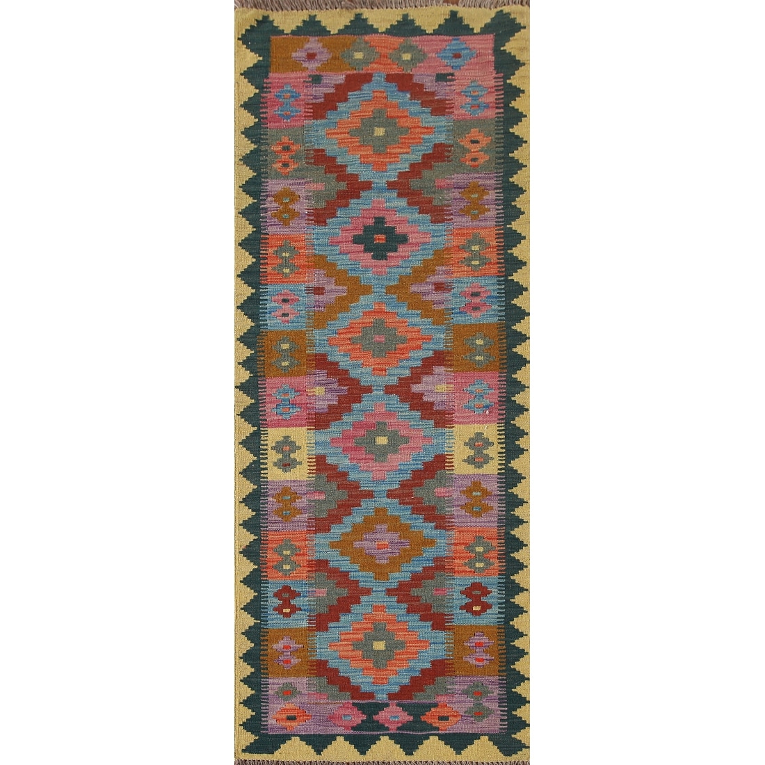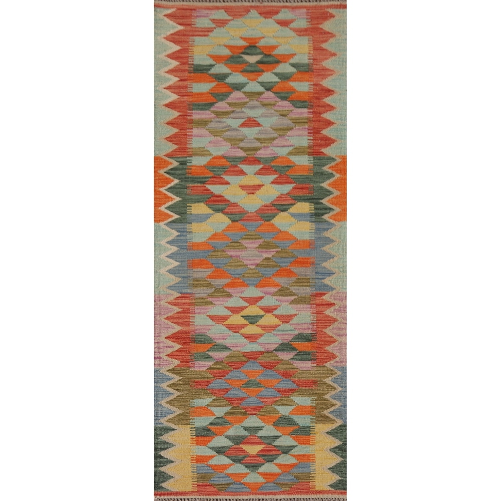 Reversible Multi-Color Kilim Runner Rug Hand-Woven Wool Carpet - 2'3"x 6'9"