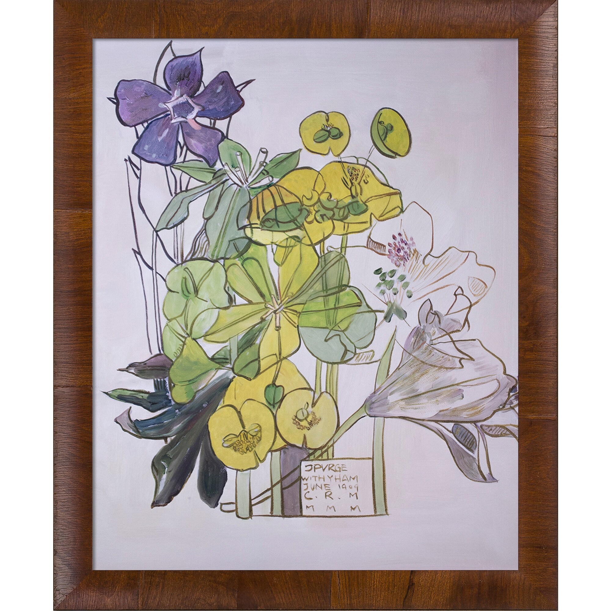 La Pastiche Spurge, Withyham with Panzano Olivewood Frame, 19" x 23"