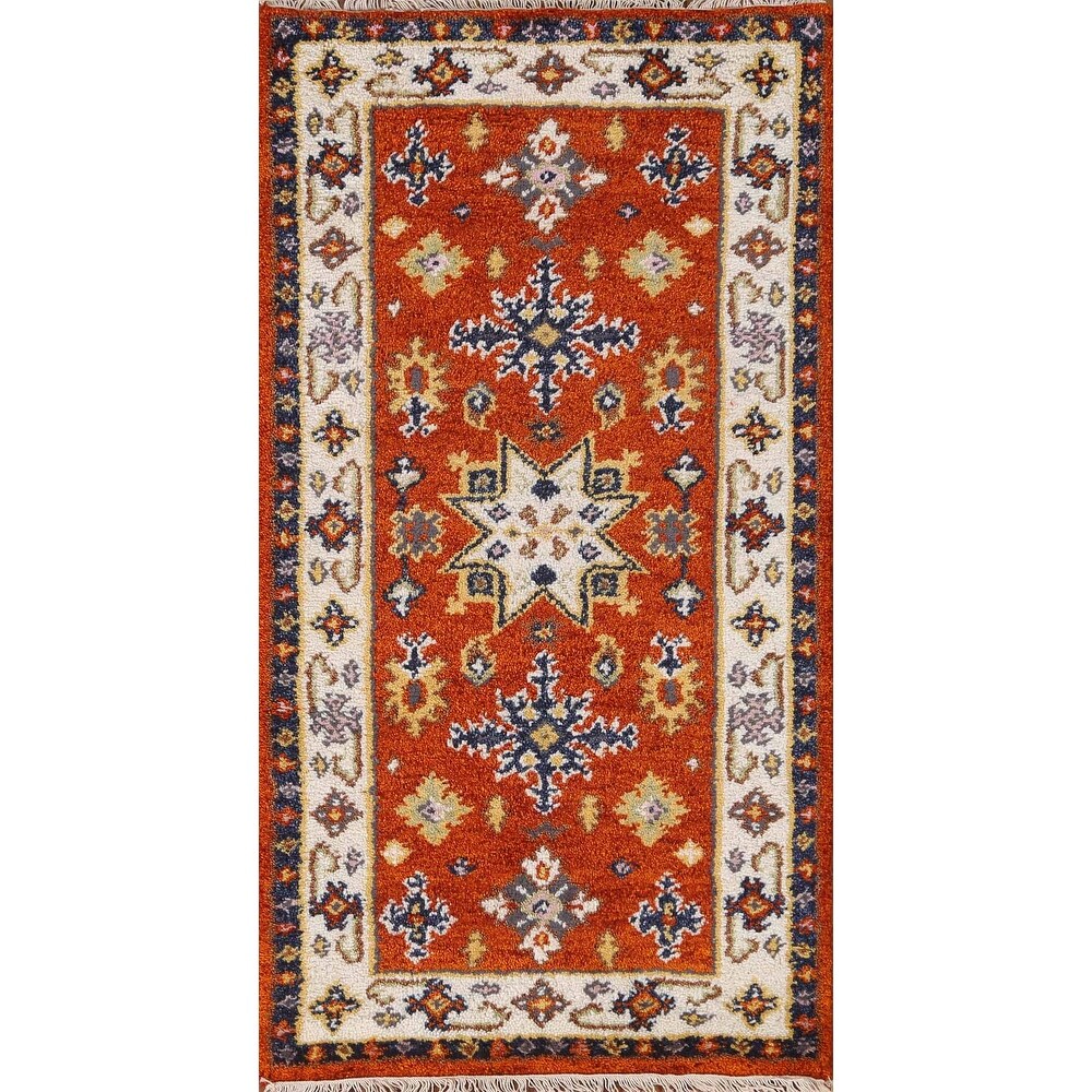 Geometric Kazak Rug Runner Hand-knotted Wool Carpet - 2'3" x 4'6"