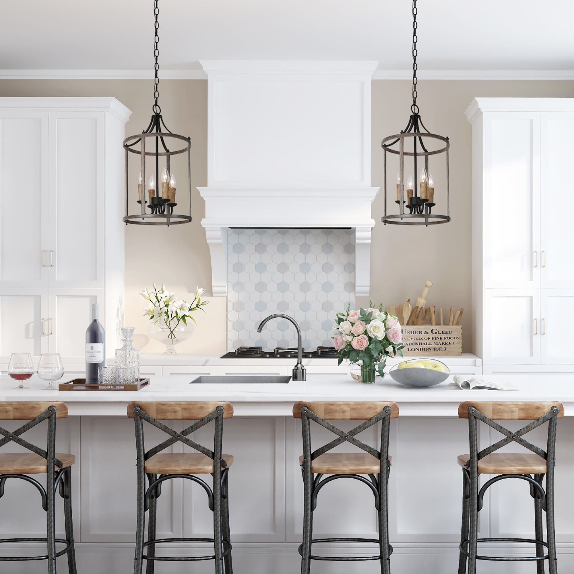 Farmhouse 4-Light Rustic Cylinder Candle Chandelier for Dining Room - 12.5"W x 23"H