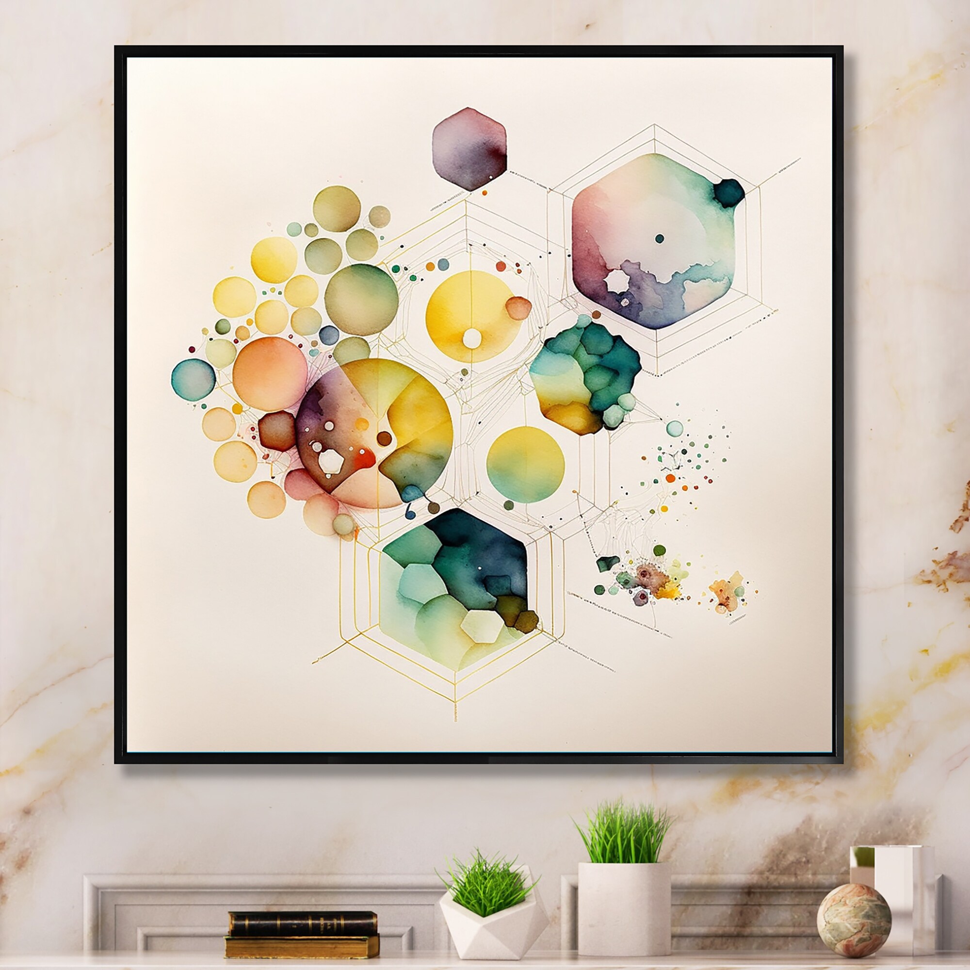 Designart "Hexagon And Circular Abstract I" Modern Framed Canvas Art Print