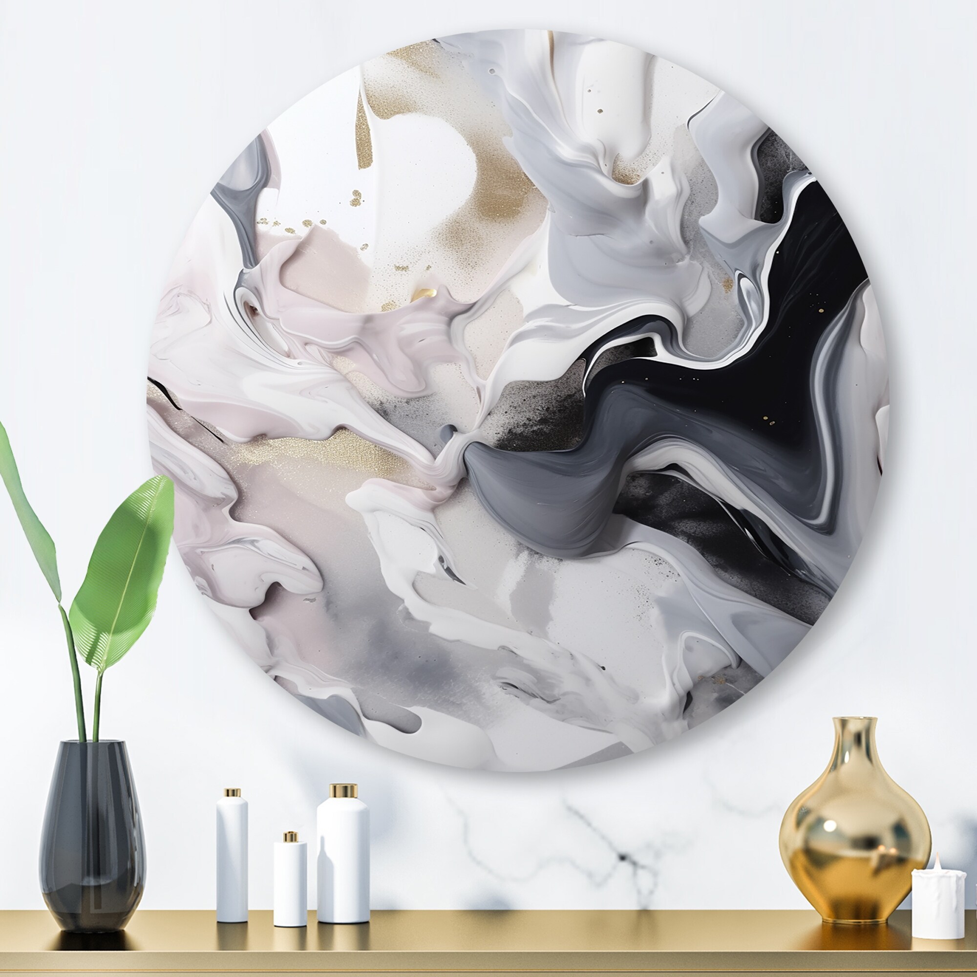 Designart "White And Grey Captivating Marble II" Abstract Marble Metal Round Wall Art