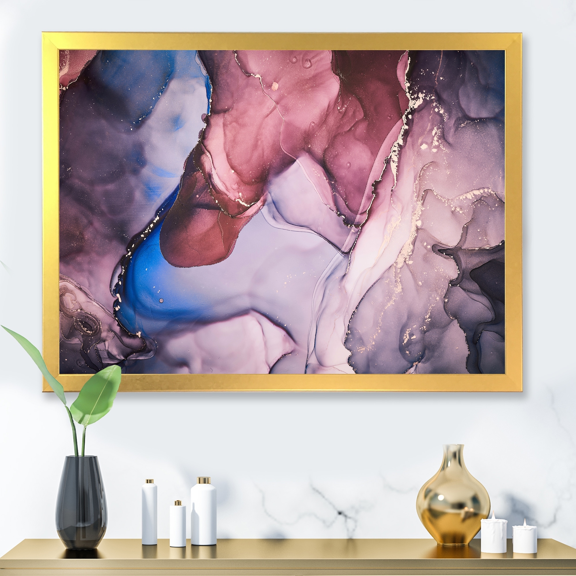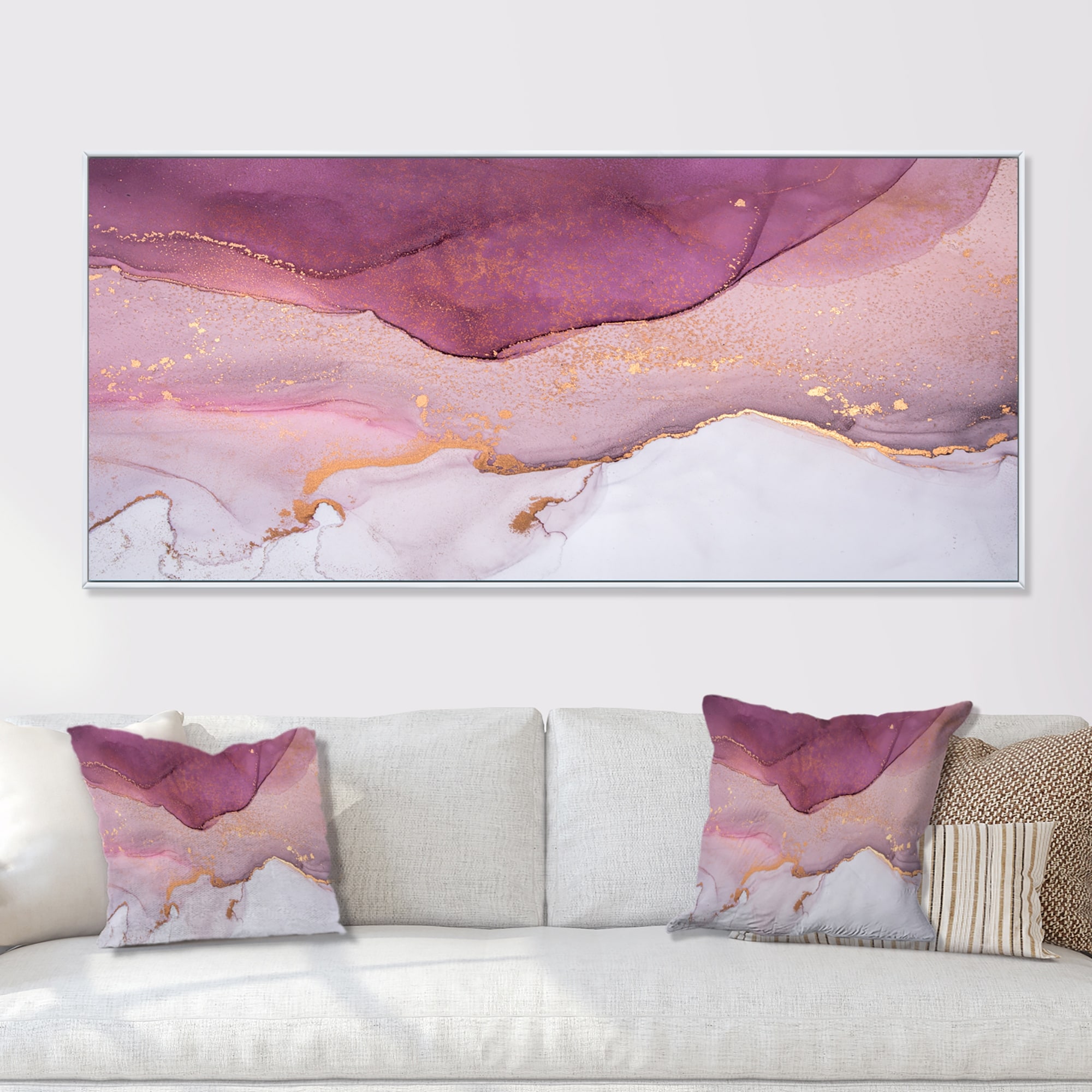 Designart "Pink And Golden Marble Art Ripples" Abstract Framed Canvas Wall Art