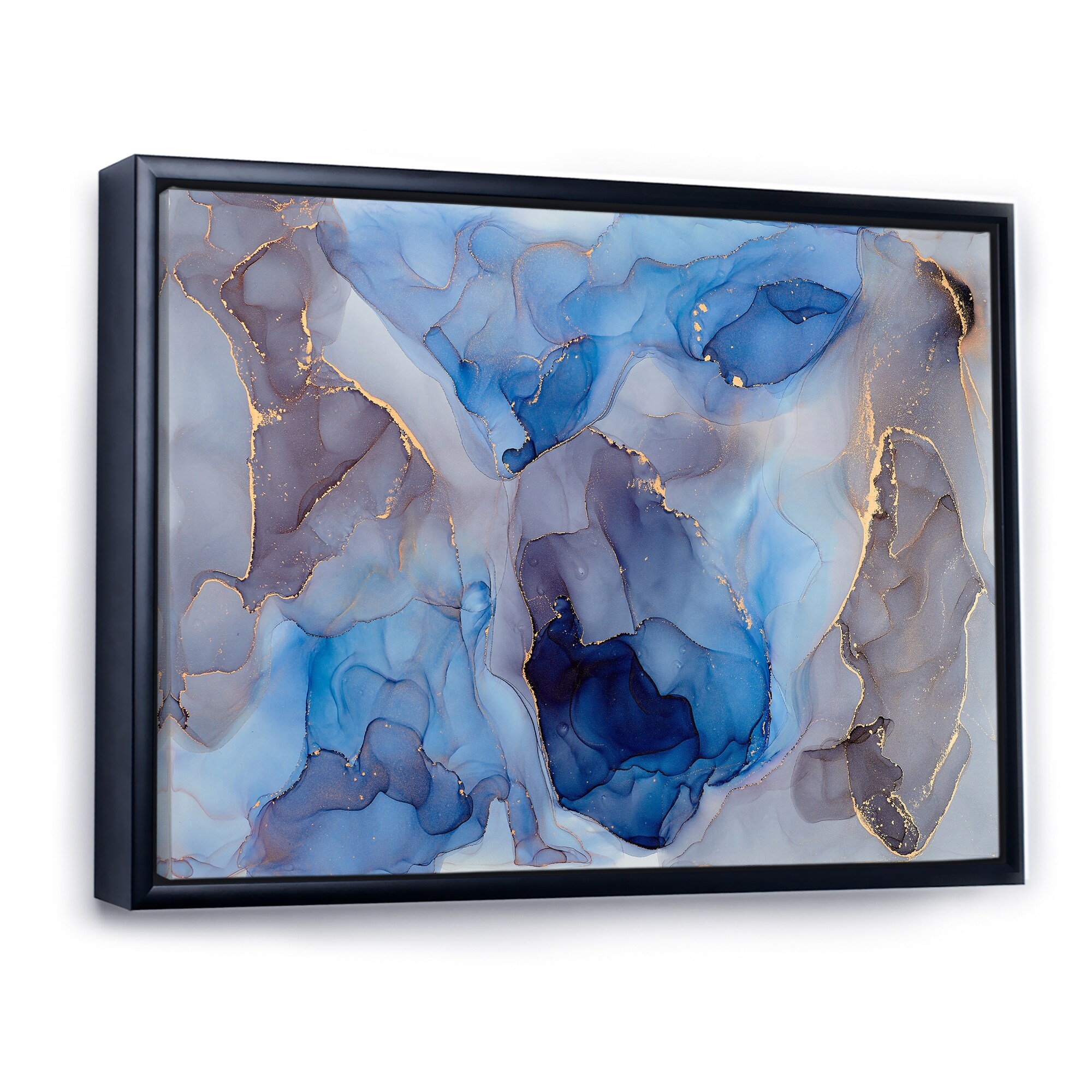 Designart "Blue And Grey Luxury Abstract Fluid Art III" Modern Framed Canvas Wall Art Print