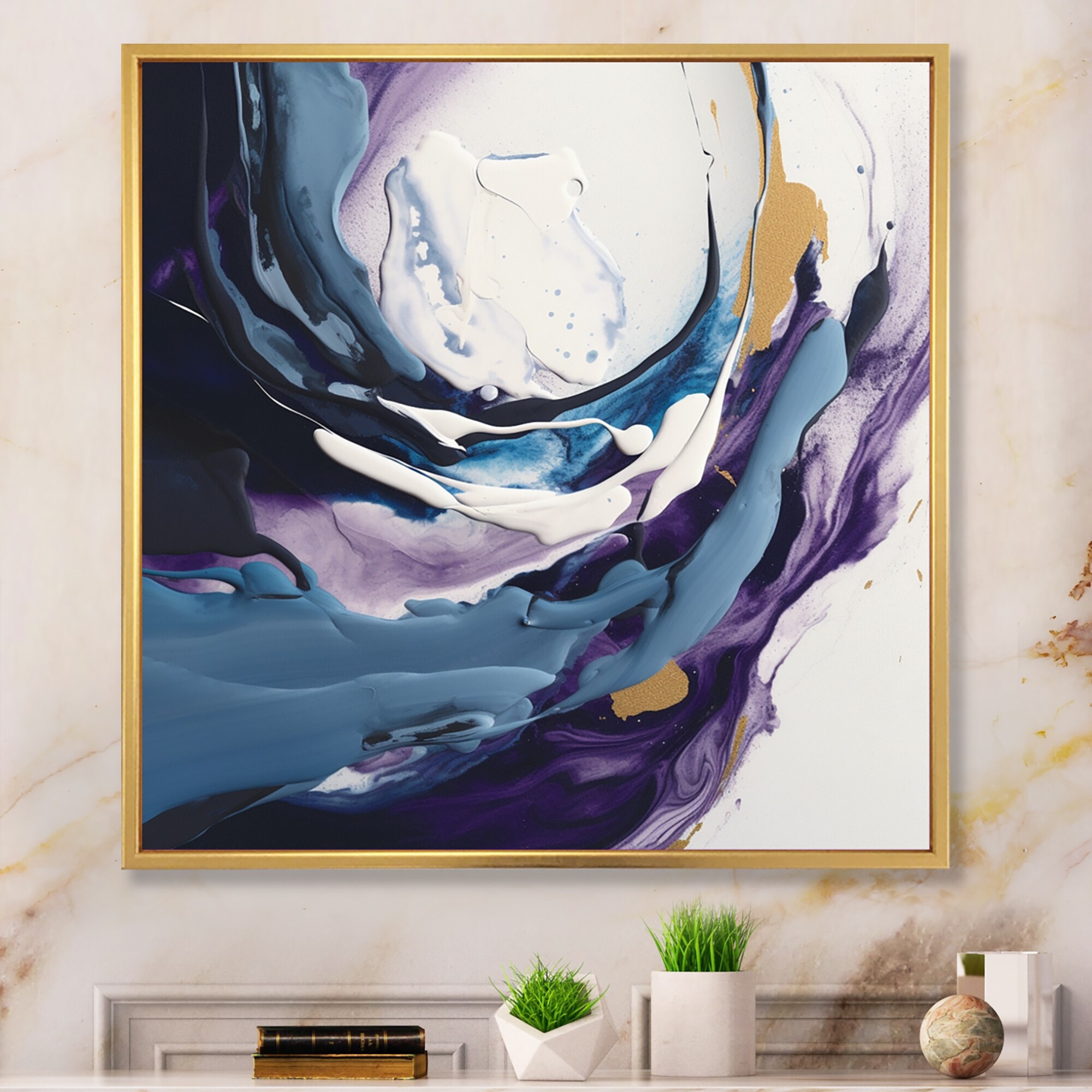 Designart "Turquoise And Purple Luxury Abstract Fluid Art VI" Modern Framed Canvas Wall Art Print