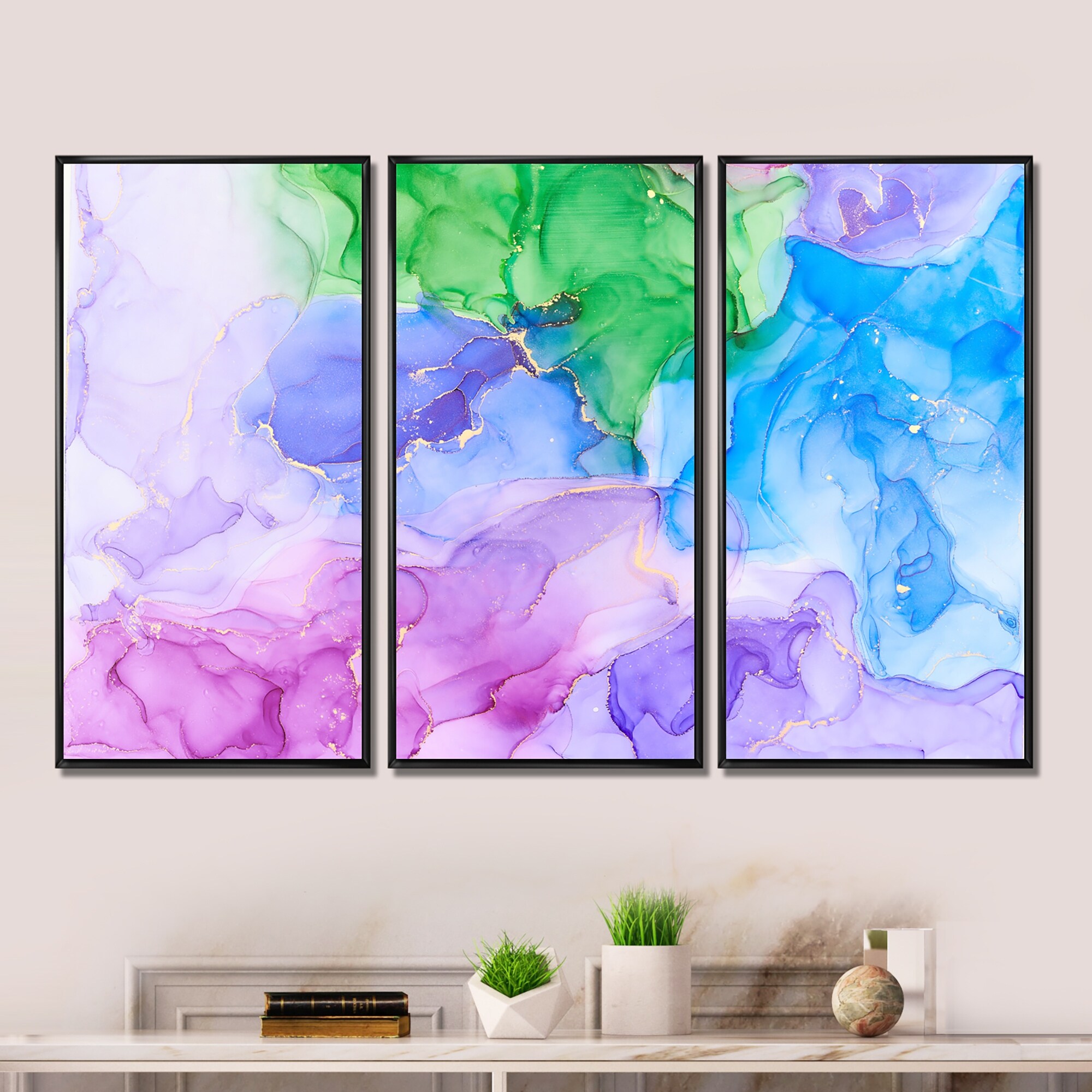 Designart "Multicolor Luxury Abstract Fluid Art" Modern Framed Canvas Wall Art Set of 3 - 4 Colors of Frames
