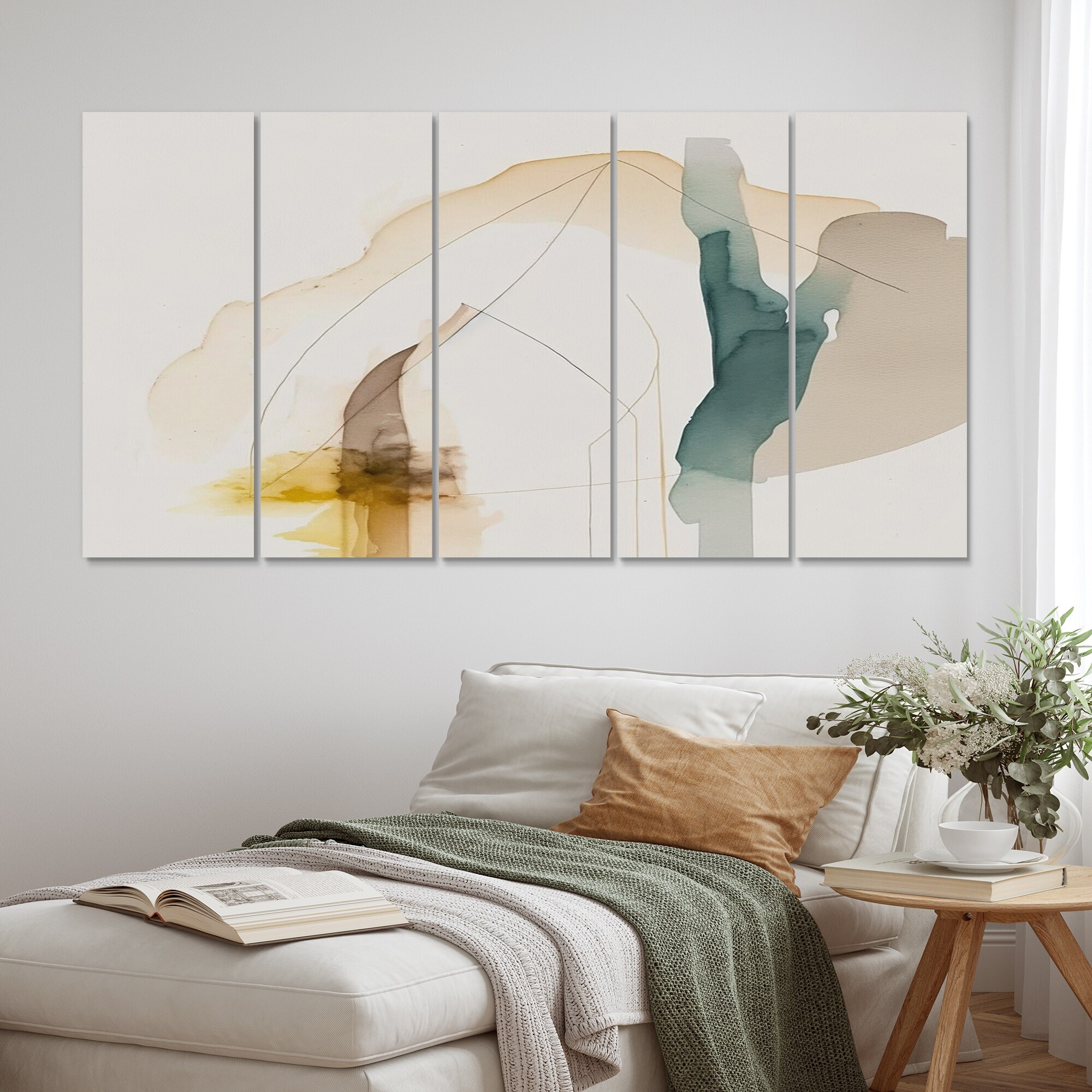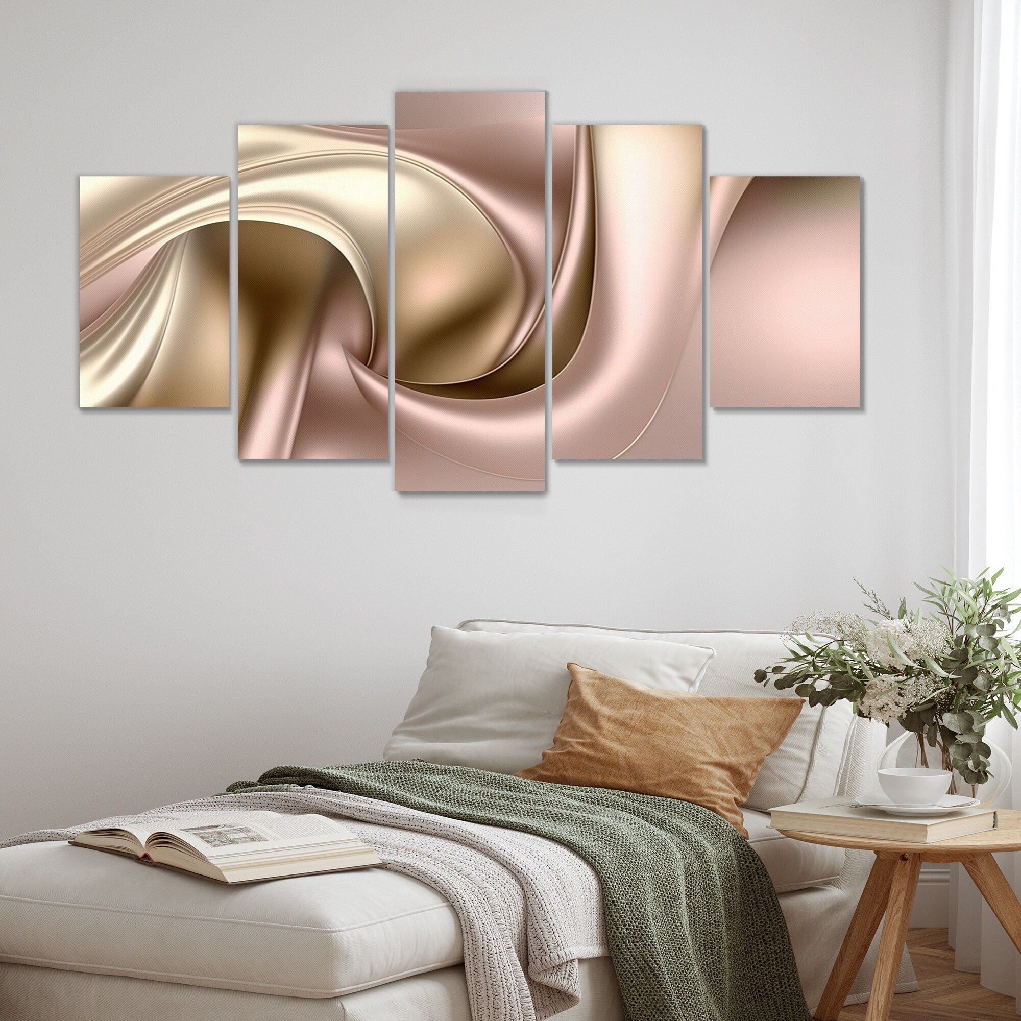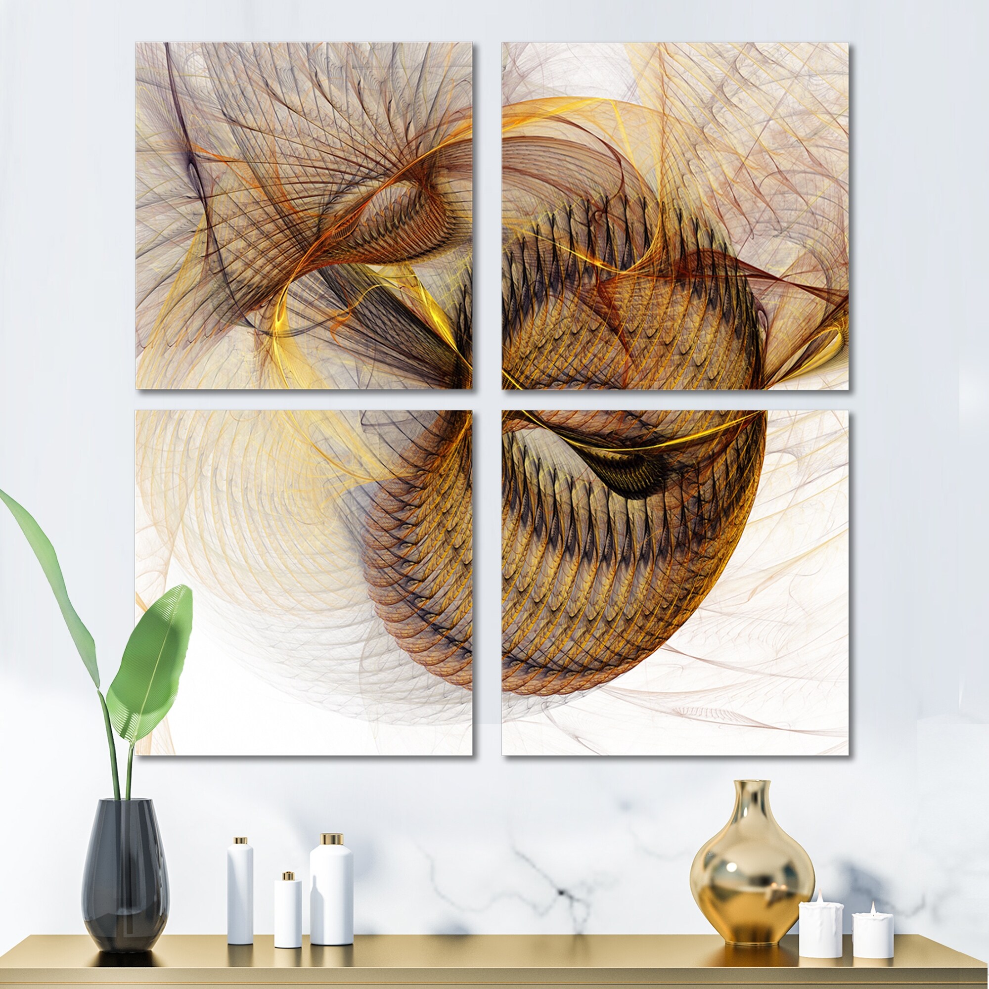 Designart "Minimal Liquid Gold And Taupe Waves IV" Abstract Liquid Ink Multipanel Wall Art Prints