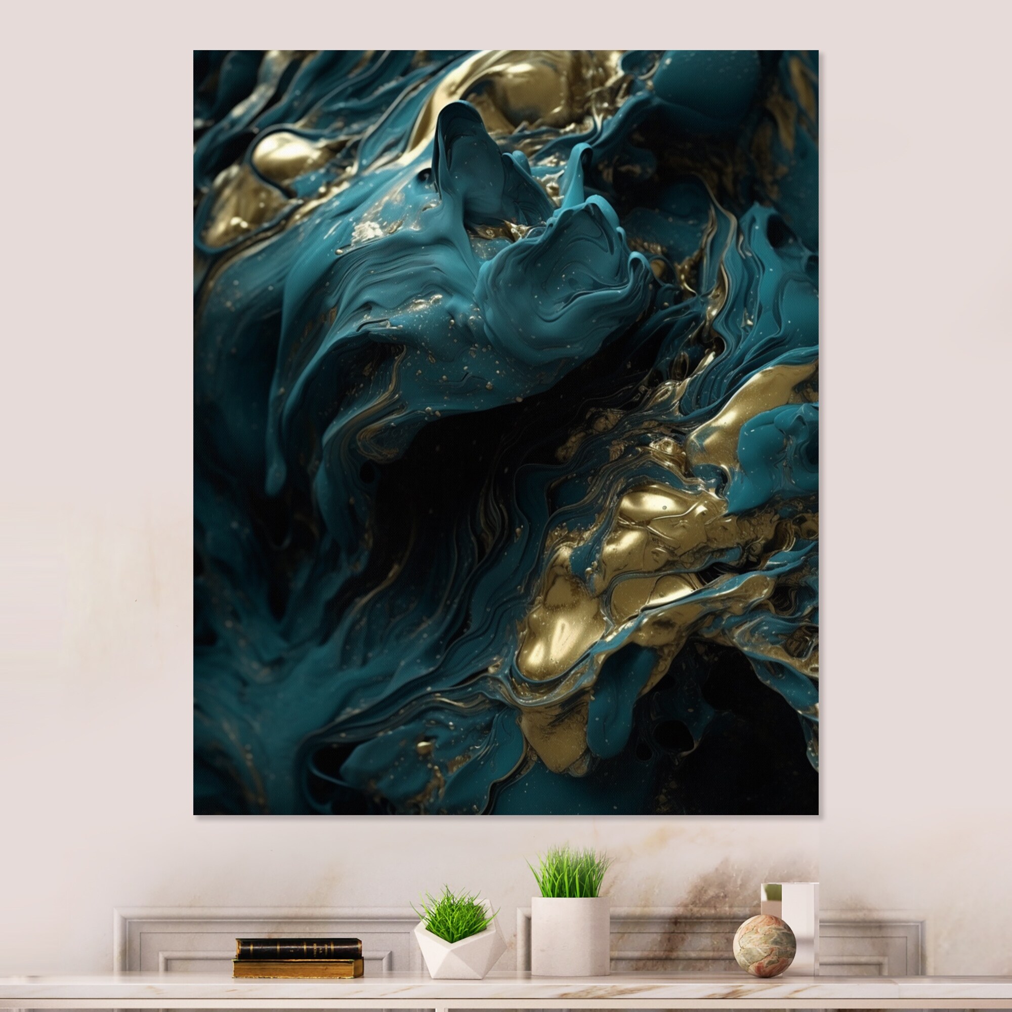 Designart "Blue And Yellow Marble Liquid Ink I" Abstract Marble Metal Wall Art