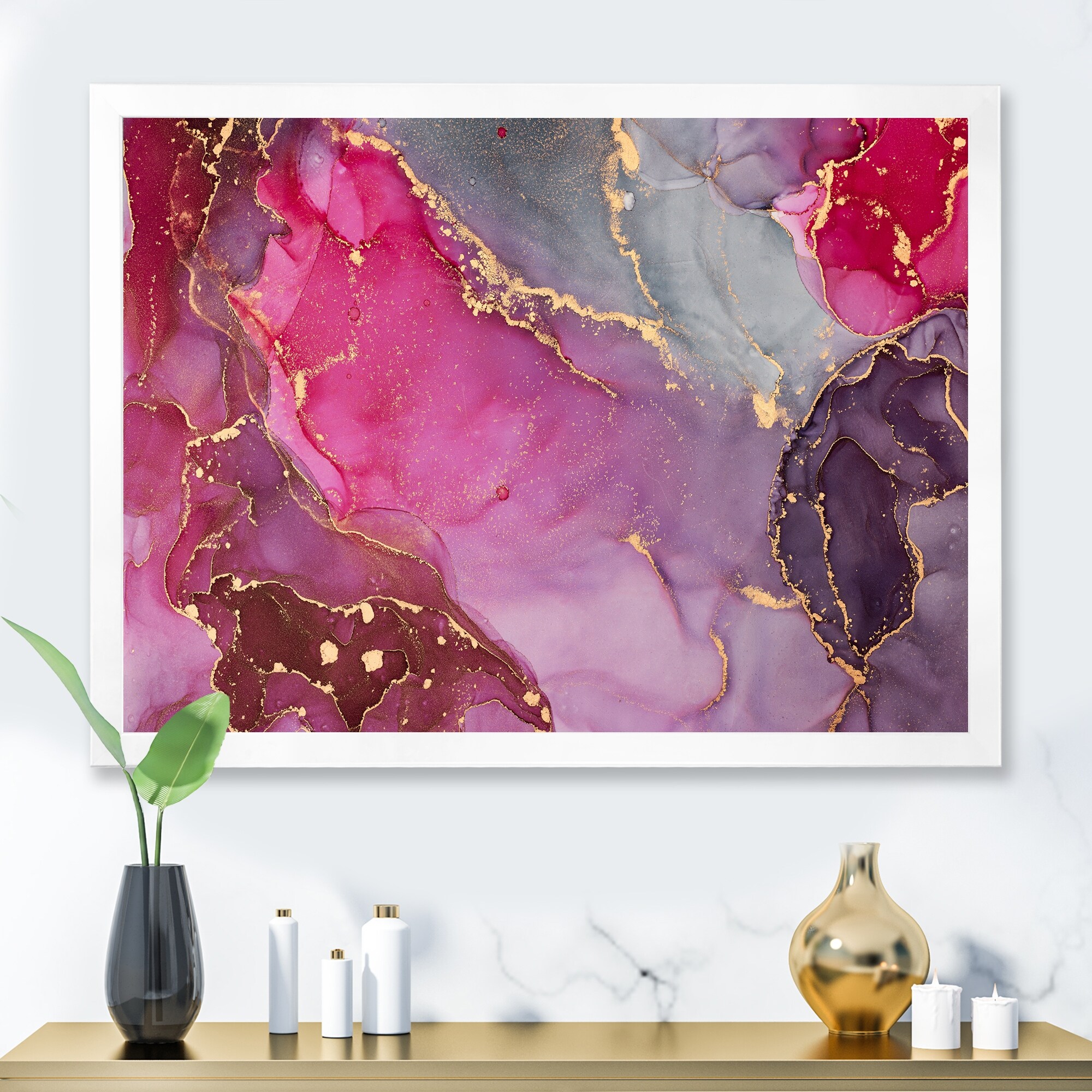 Designart "Pink And Black Luxury Abstract Fluid Art III" Modern Framed Art Print