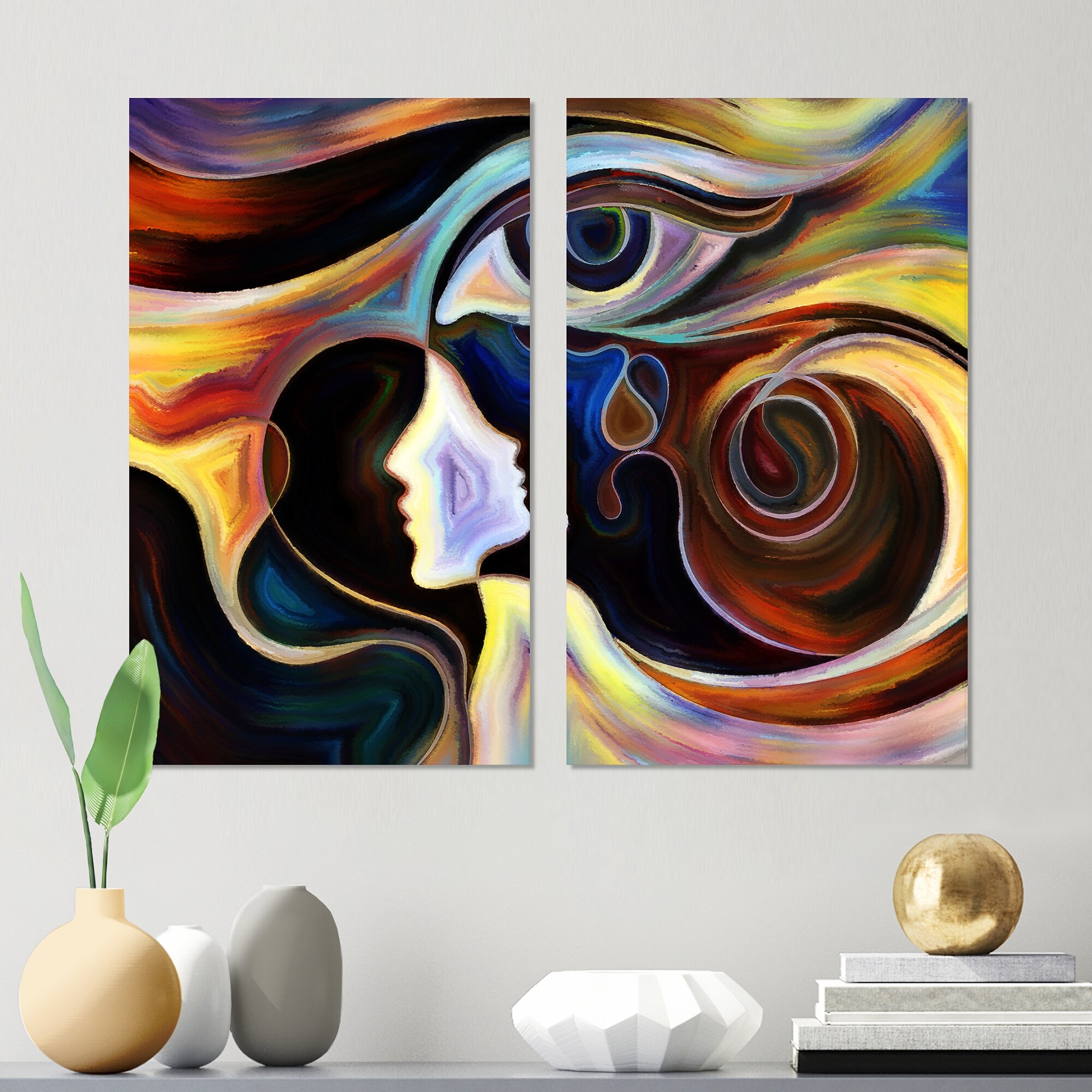 Designart "Colorful Intuition" Abstract Canvas Wall Art Print 2 Piece Set
