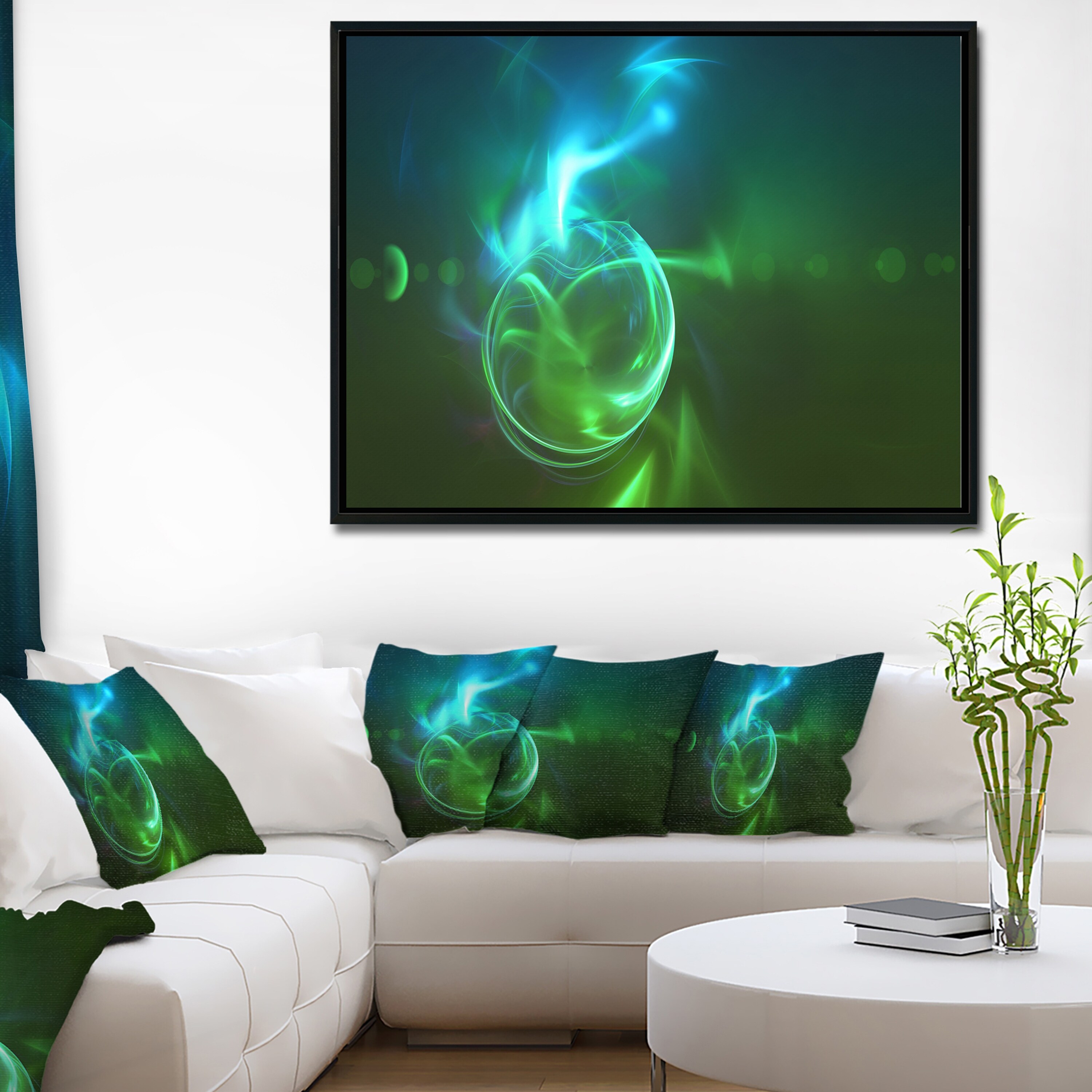 Designart "Glowing Green Circles" Abstract Framed Canvas art print