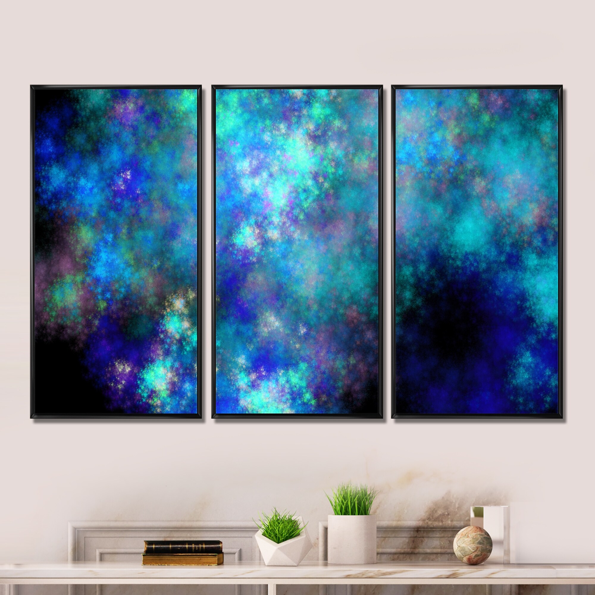 Designart "Light Blue Starry Fractal Sky" Abstract Framed Canvas Wall Art Set of 3 - 4 Colors of Frames