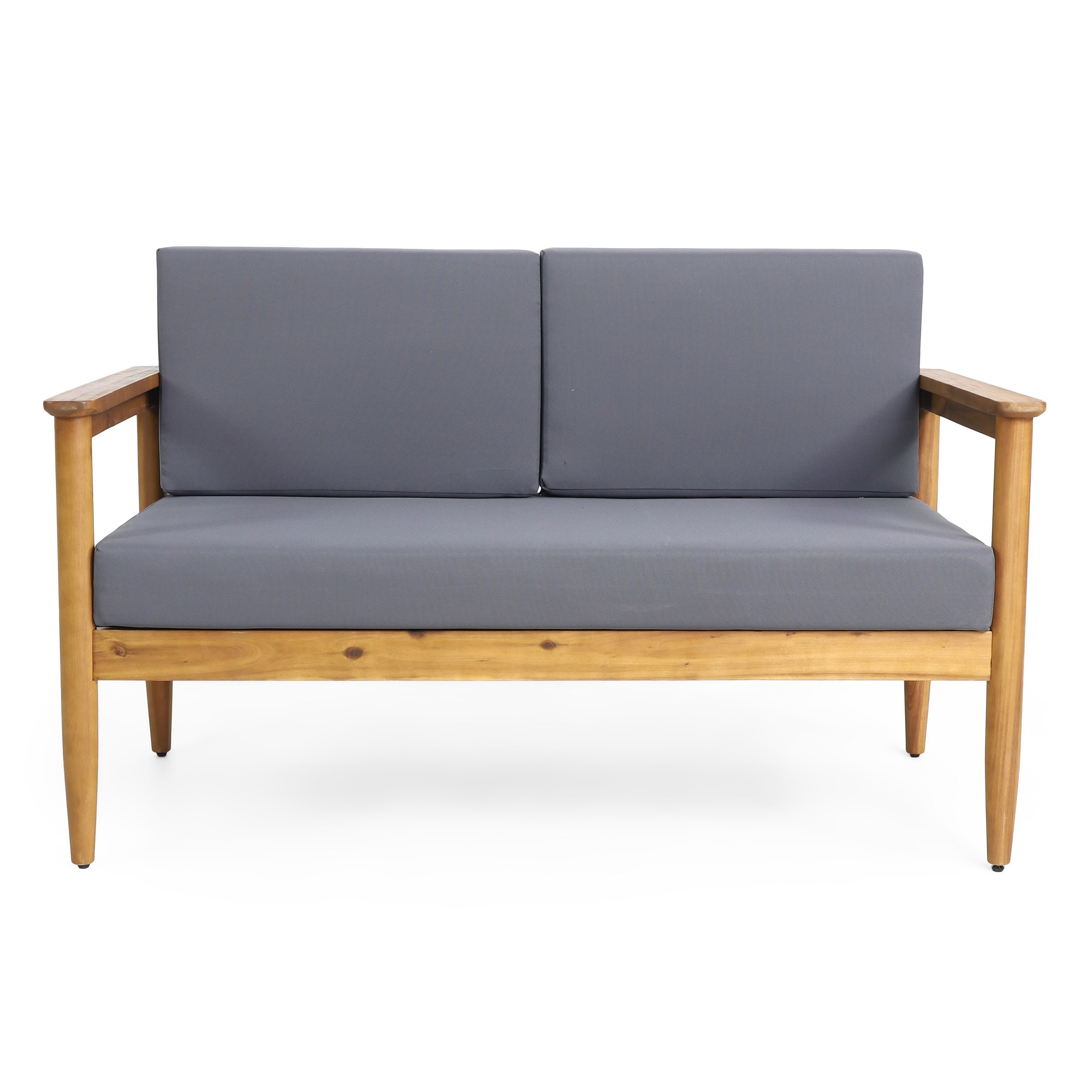 Cushion Acacia Wood Outdoor Loveseat - Brown