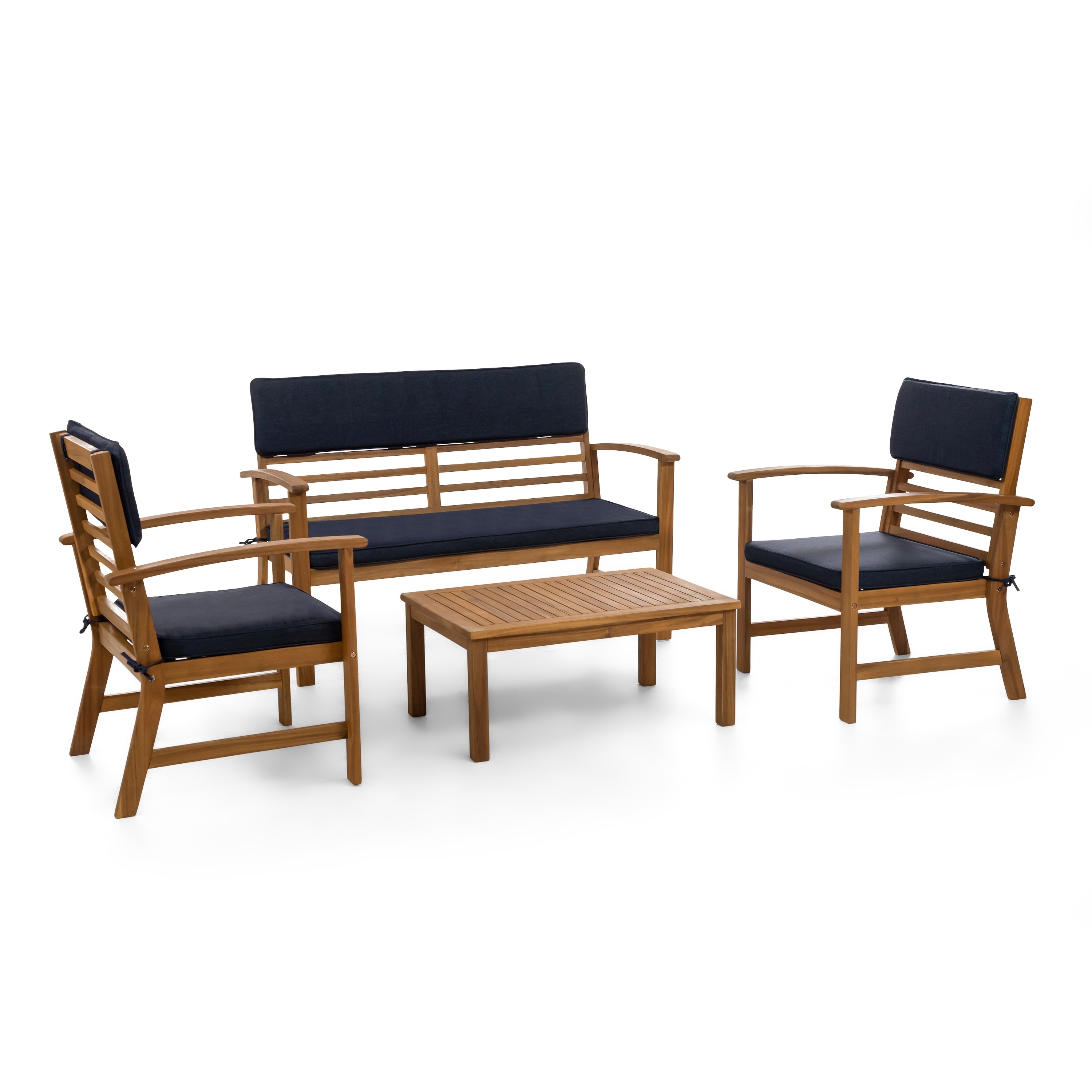 Hana 4-piece Acacia Patio Bench & Table Set with Cushions