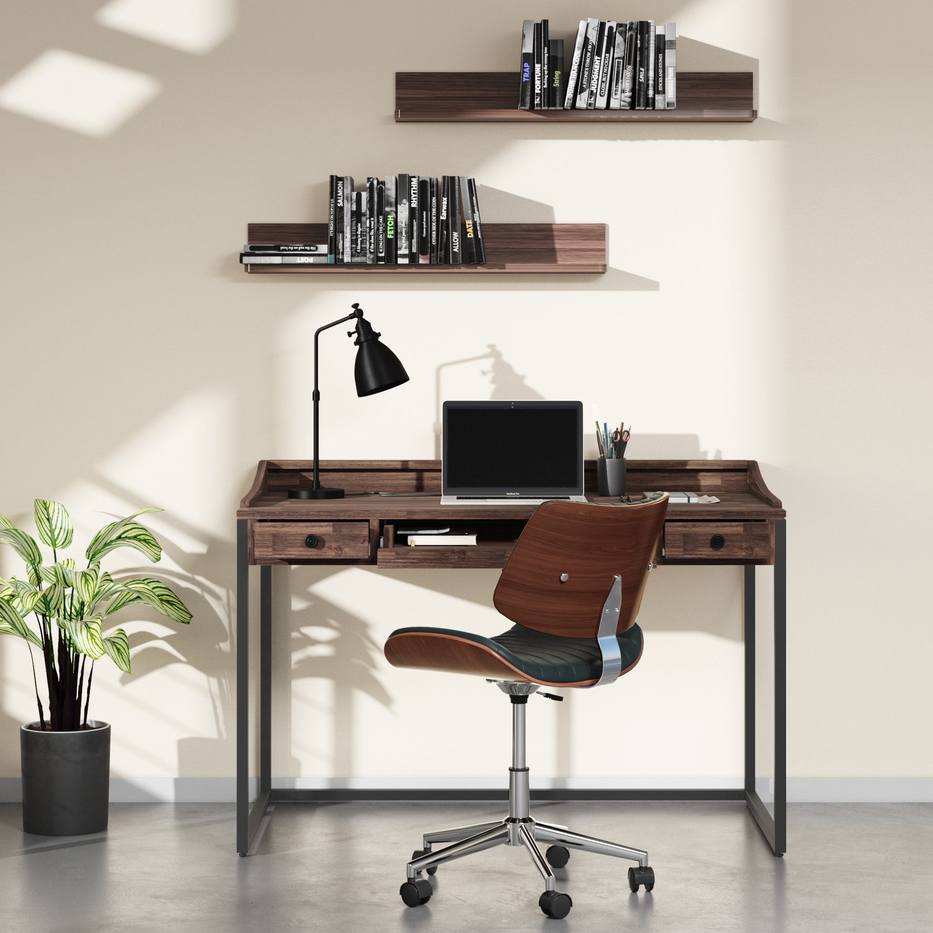 WYNDENHALL Cecilia SOLID ACACIA WOOD Industrial 48 inch Wide Small Desk in Rustic Natural Aged Brown