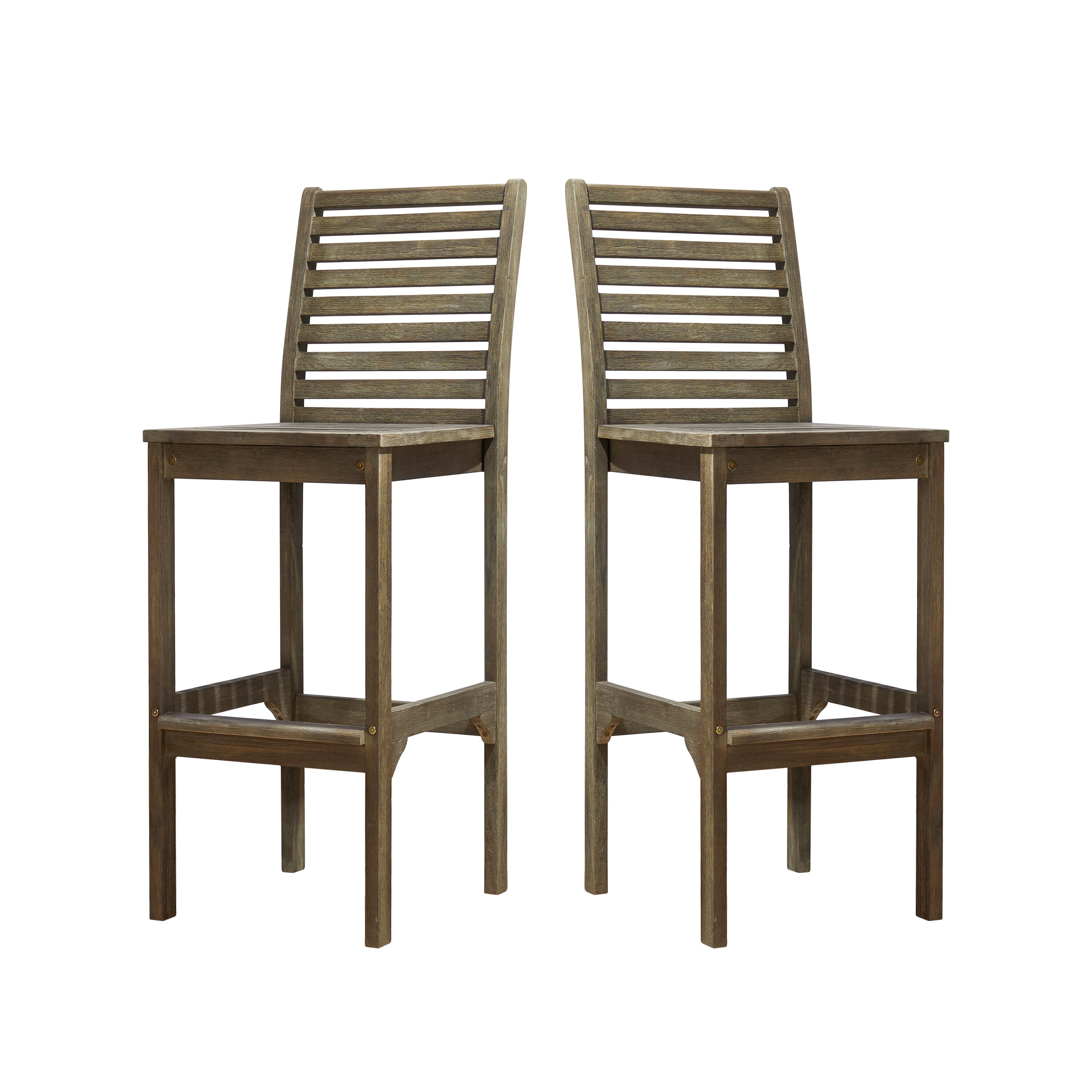Set of 2 Alicia Vintage Slatted Acacia Solid Wood Patio Bar Chairs