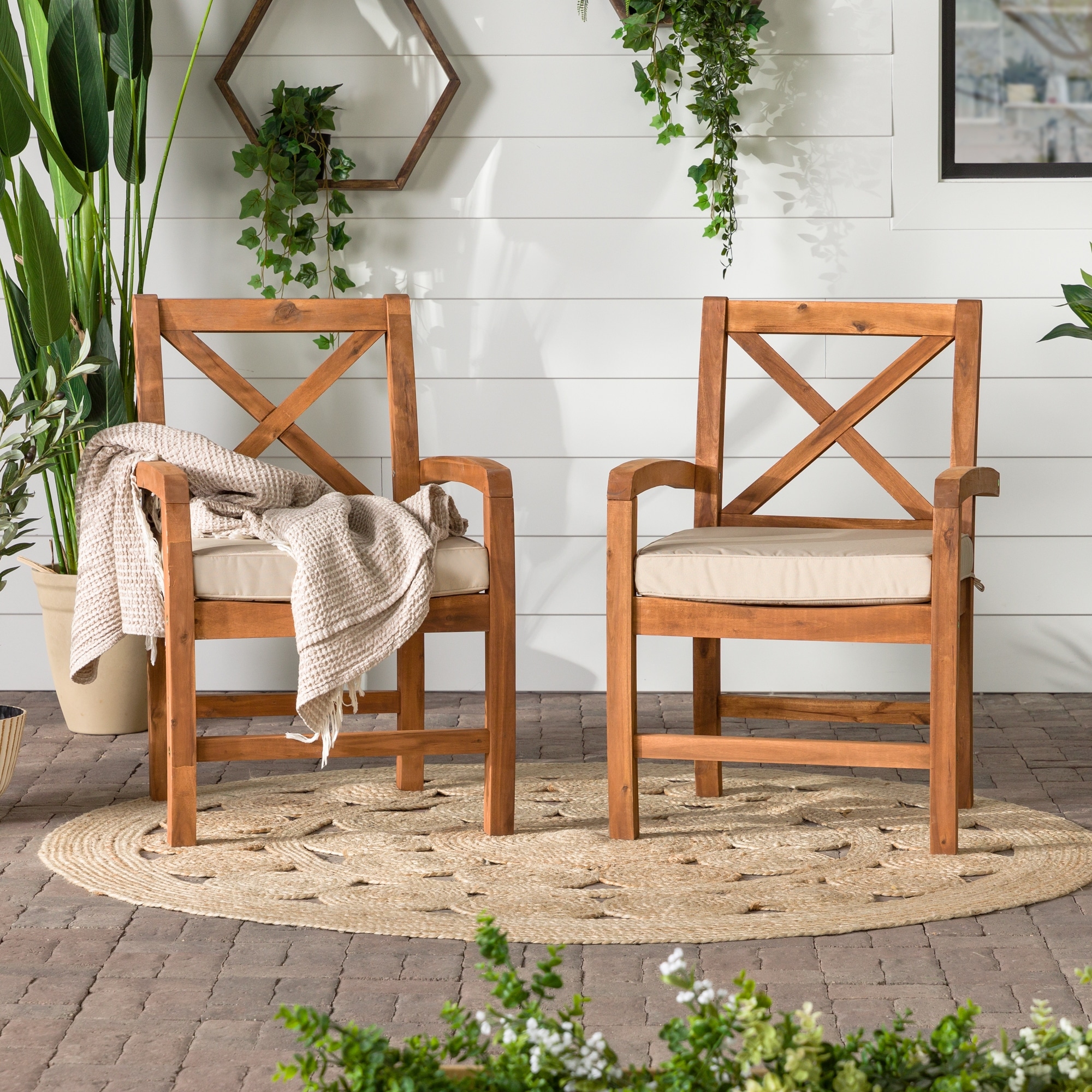 Middlebrook Acacia Wood X-Back Outdoor Chairs, Set of 2