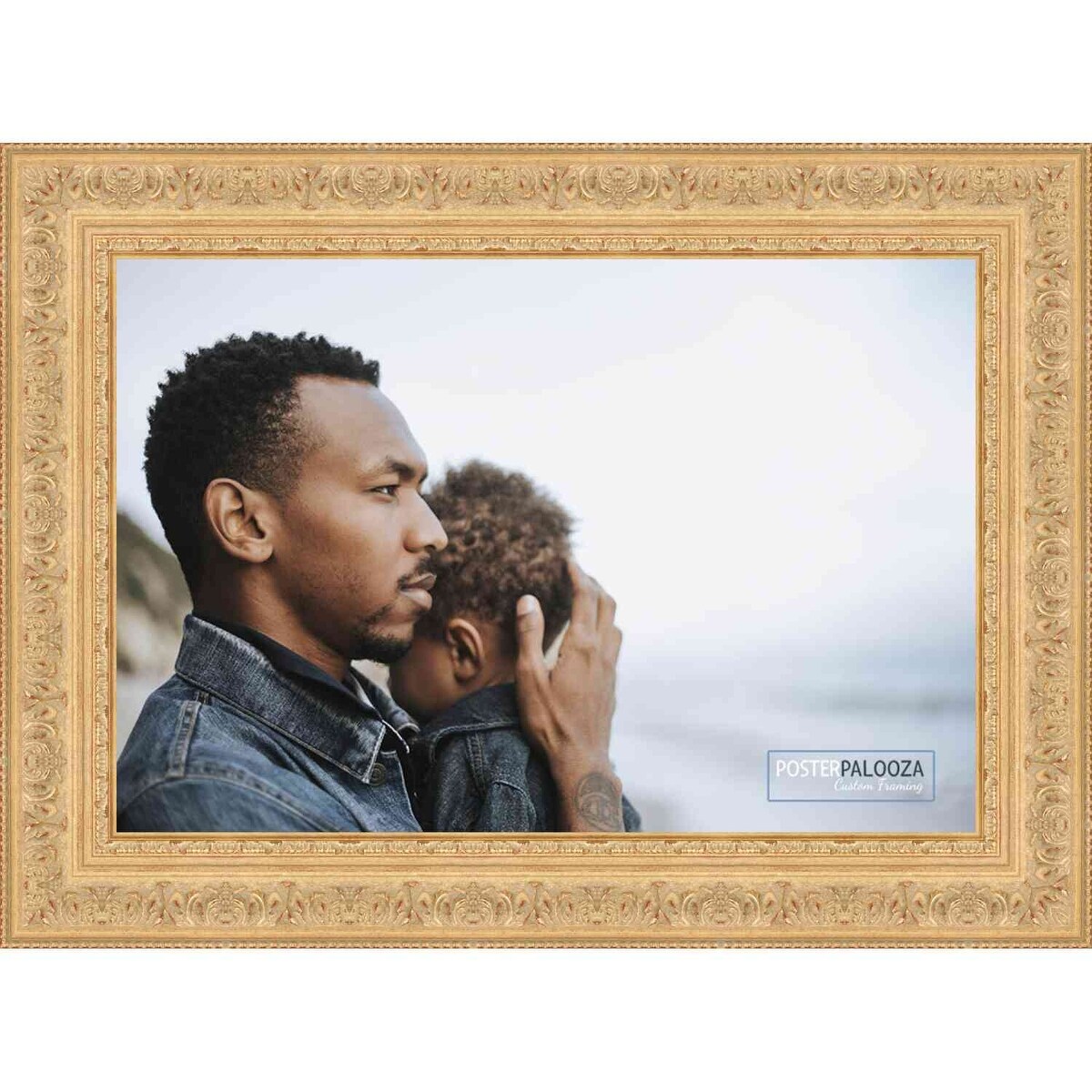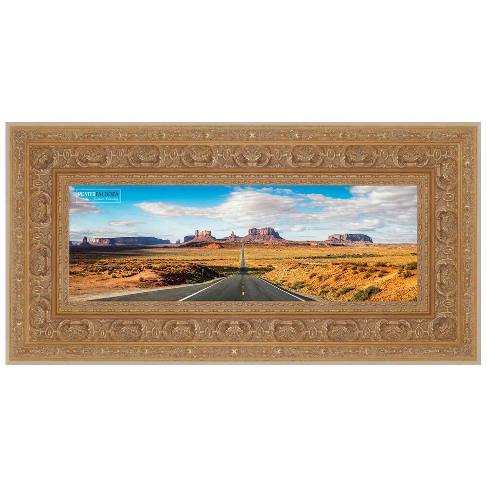 12x22 Ornate Gold Complete Wood Picture Frame with UV Acrylic, Foam Board Backing, & Hardware