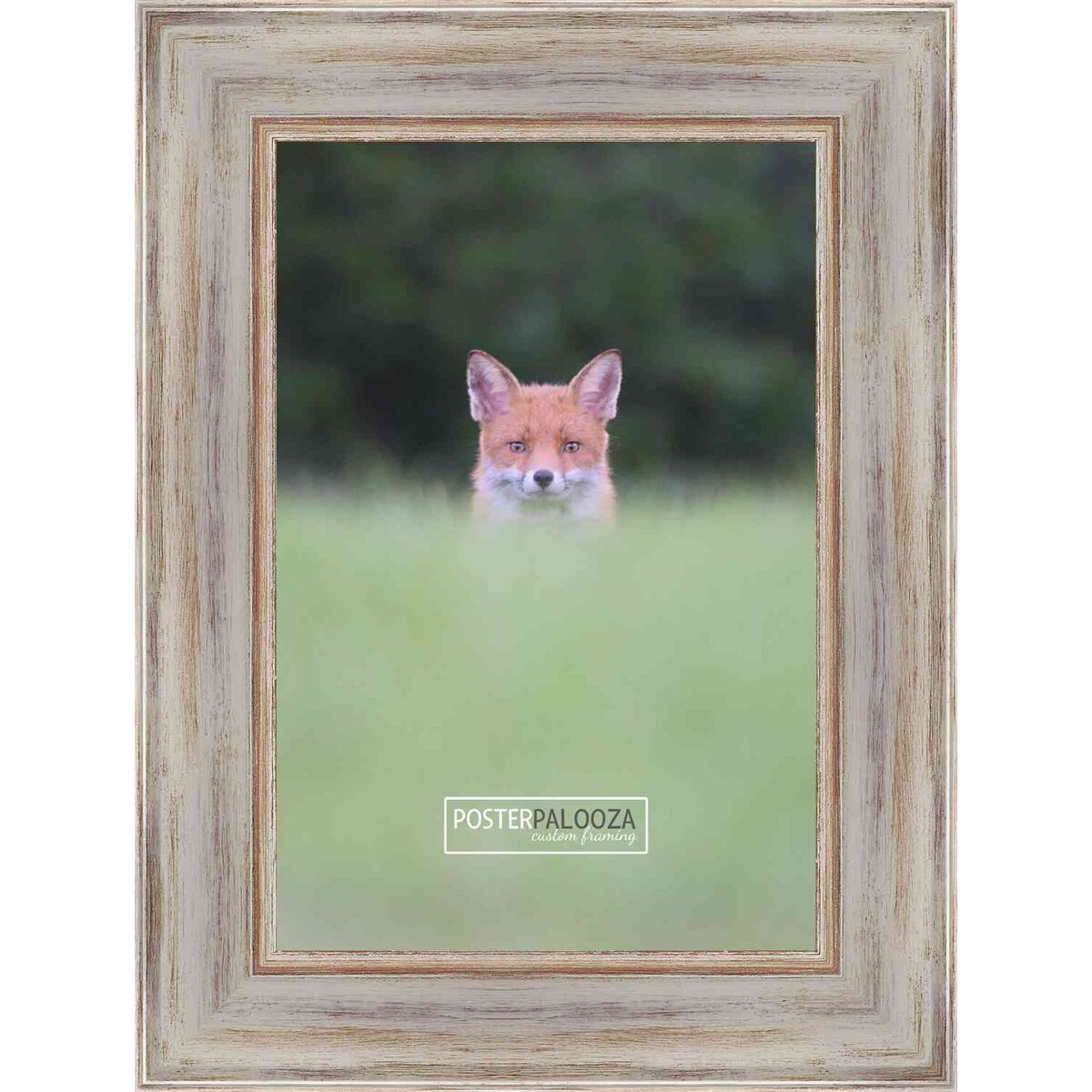 32x16 Distressed/Aged White Complete Wood Picture Frame with UV Acrylic, Foam Board Backing, & Hardware