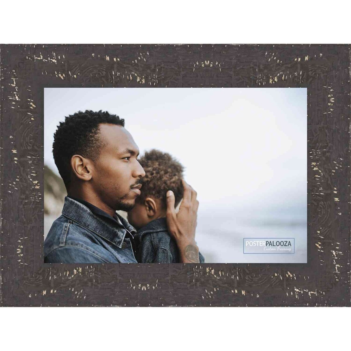 22x28 Distressed/Aged Black Complete Wood Picture Frame with UV Acrylic, Foam Board Backing, & Hardware