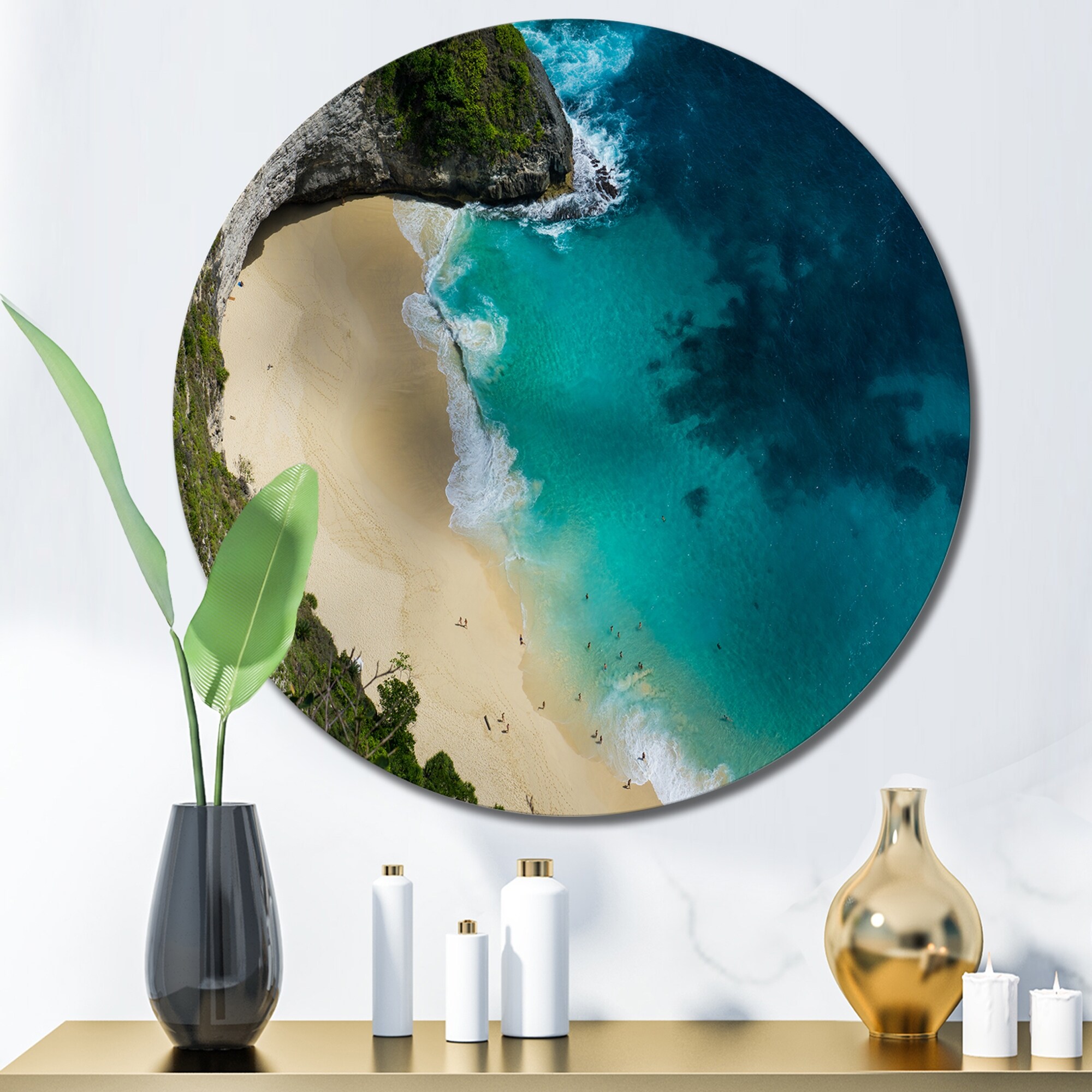 Designart 'Aerial View of Blue Ocean Beach' Nautical & Coastal Metal Circle Wall Art