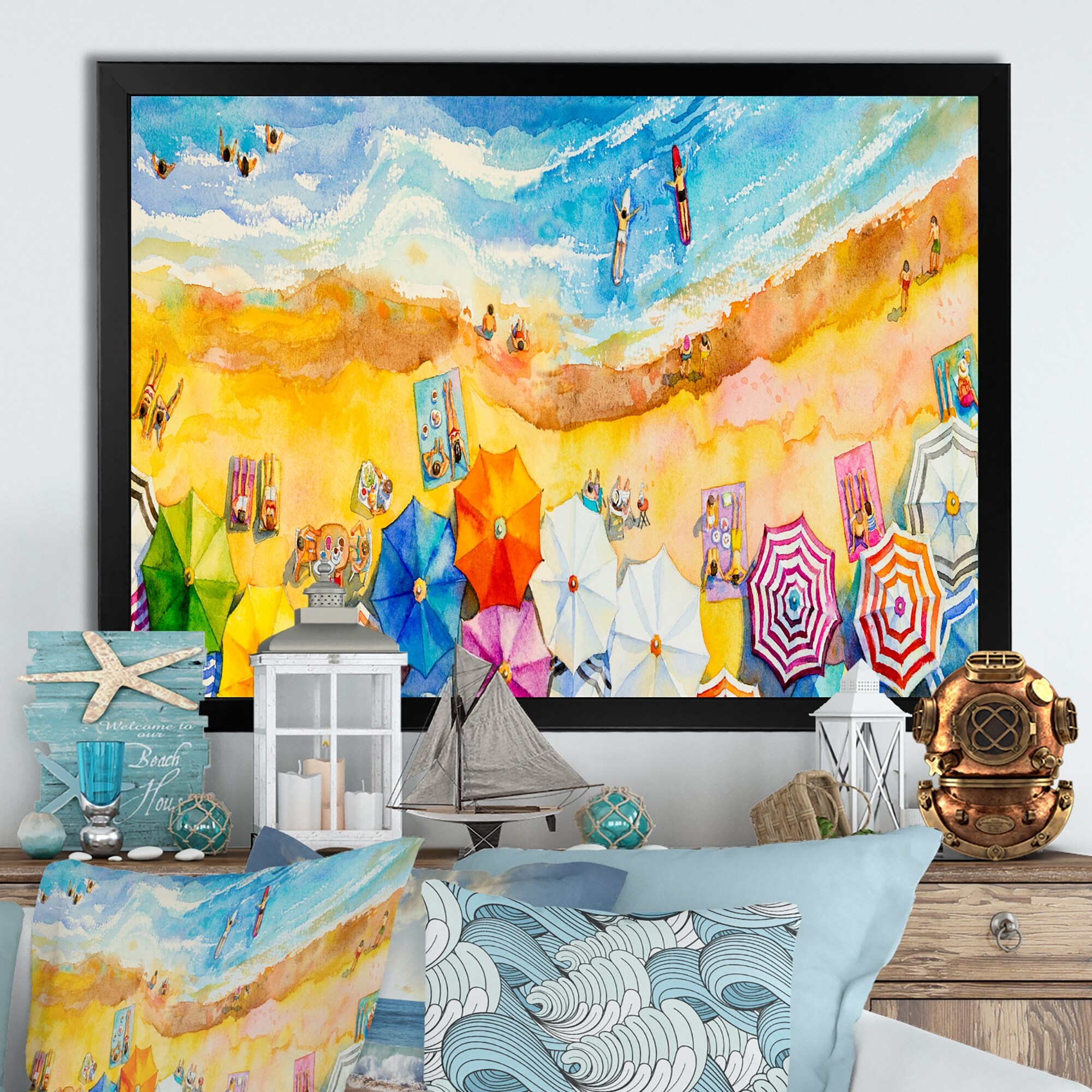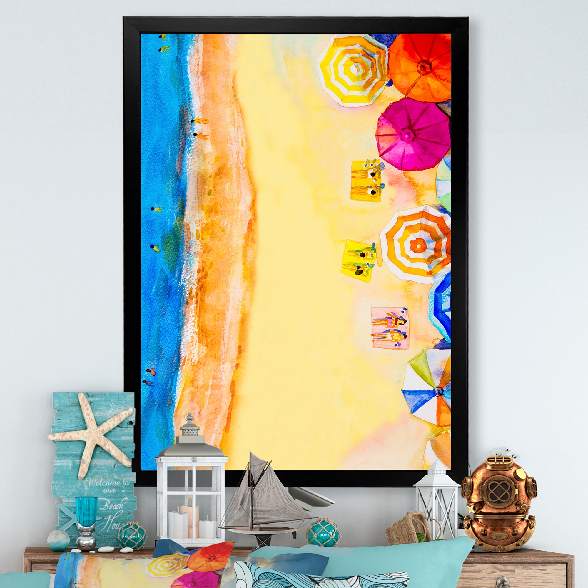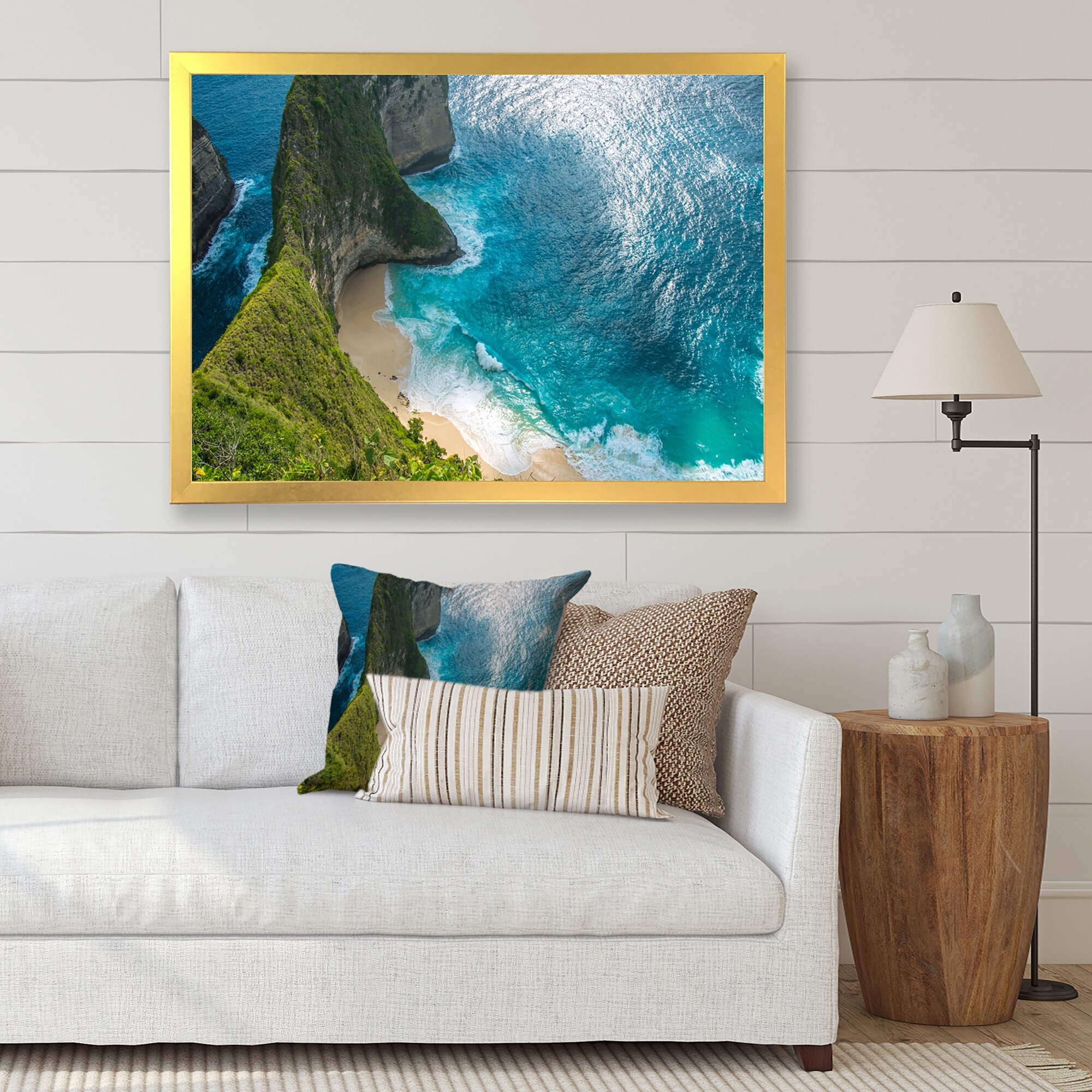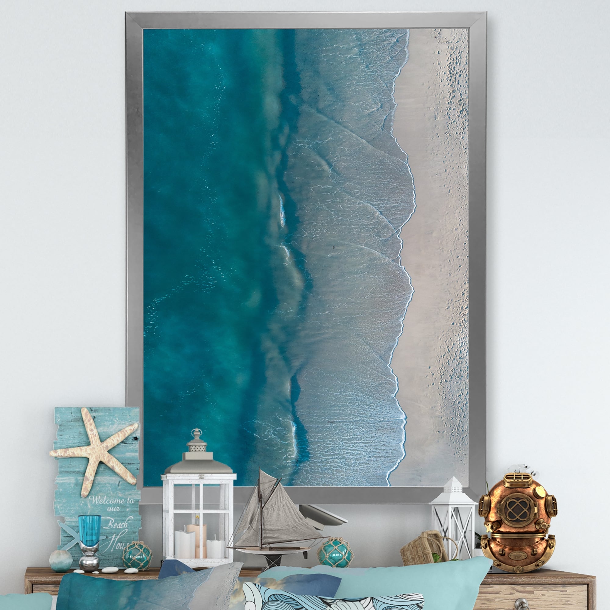 Designart "Ocean Beach Aerial View VIII" Nautical & Coastal Framed Wall Decor