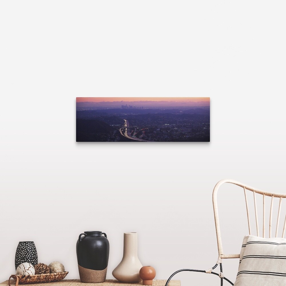"Aerial view of a city at dusk looking towards Los Angeles, Glendale, California" Canvas Wall Art
