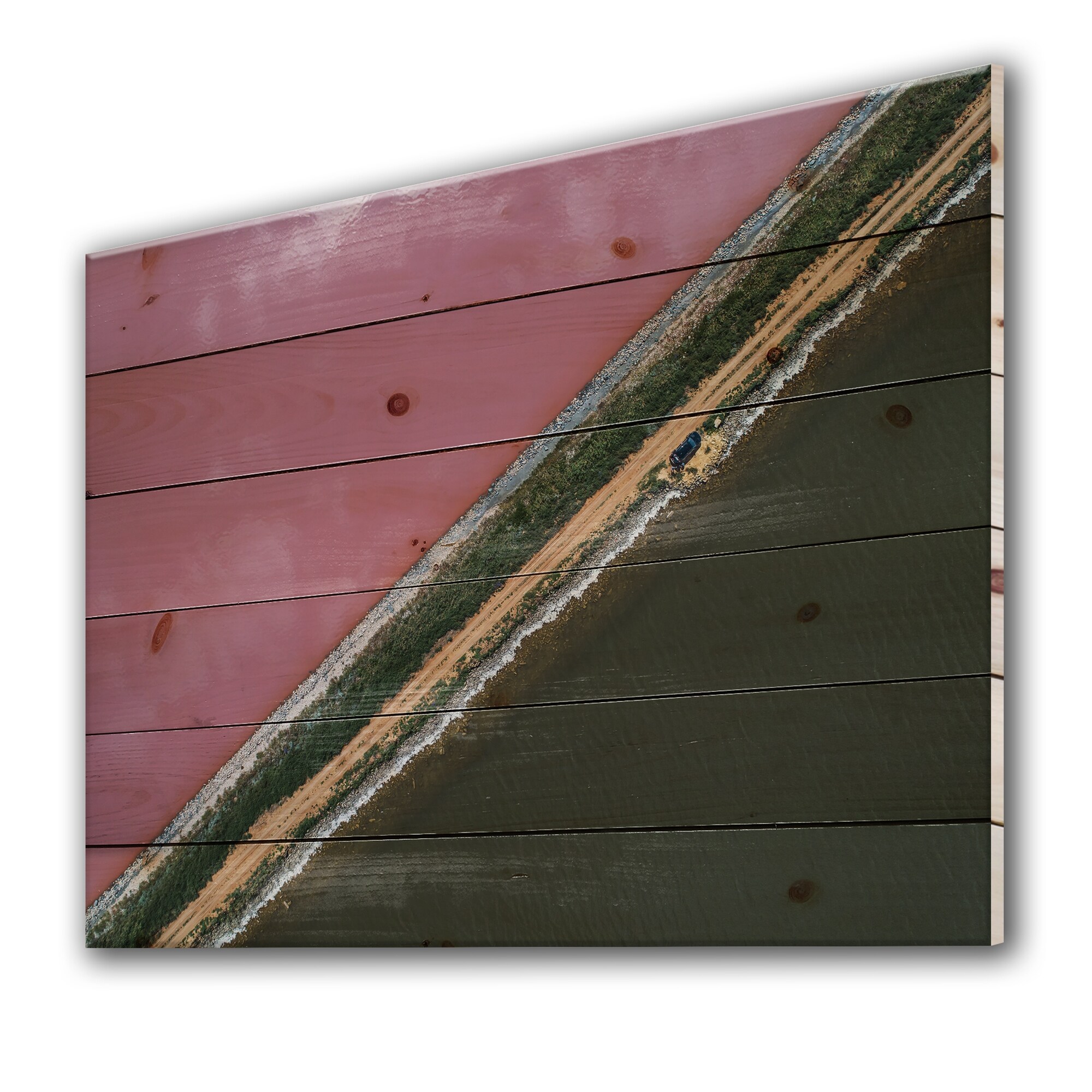 Designart 'Aerial View of Pink Lake' Traditional Print on Natural Pine Wood