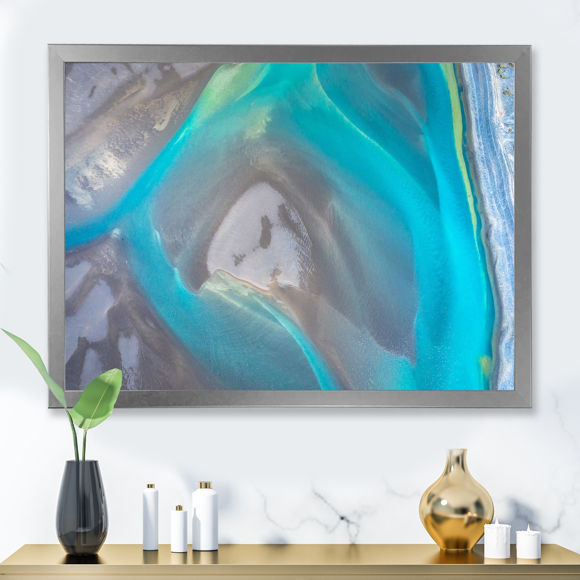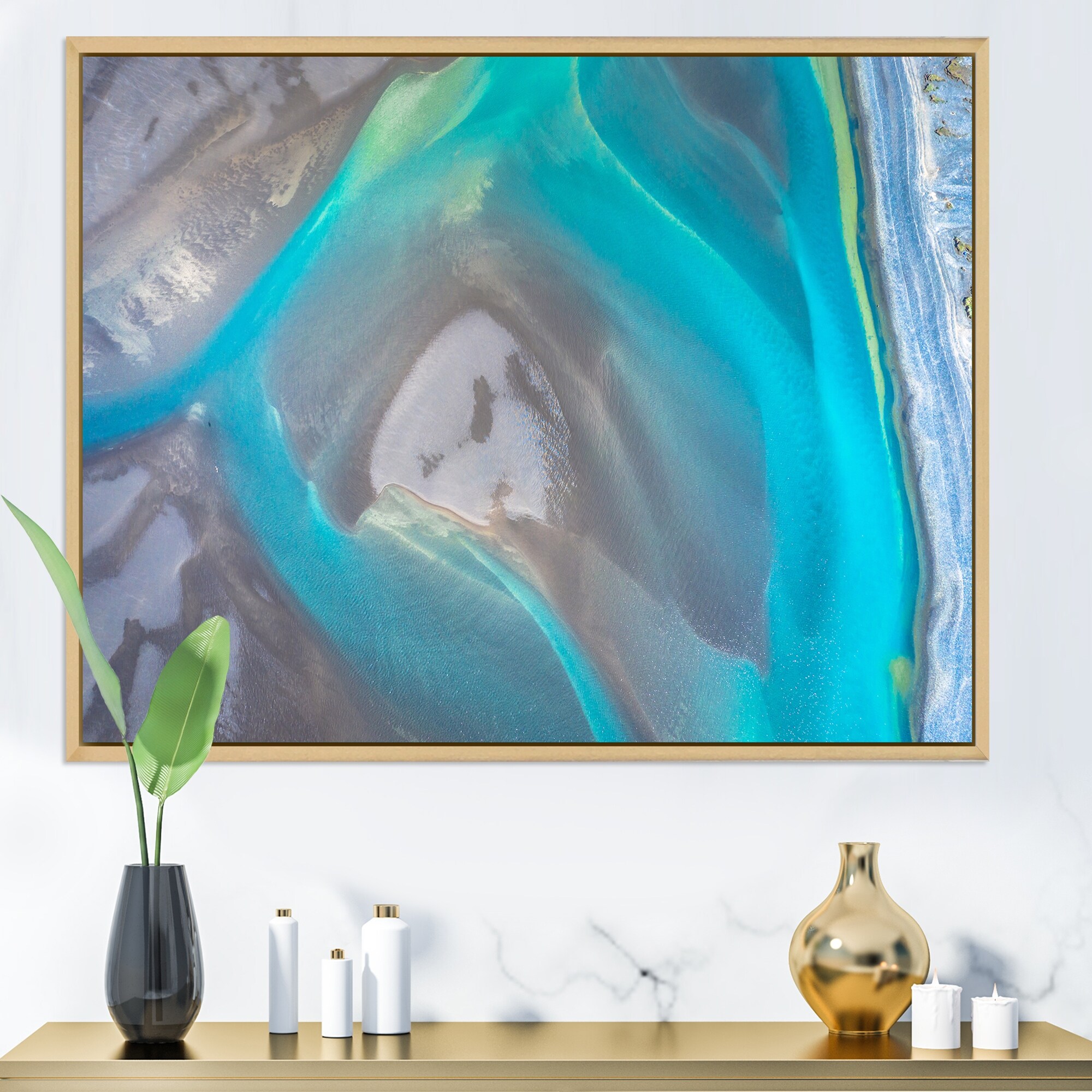 Designart "Aerial View of Glacier Rivers Iceland II" Modern Framed Canvas Wall Art Print