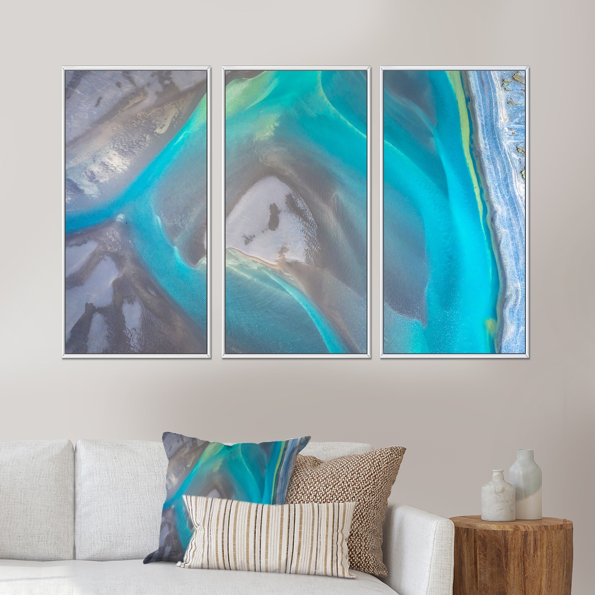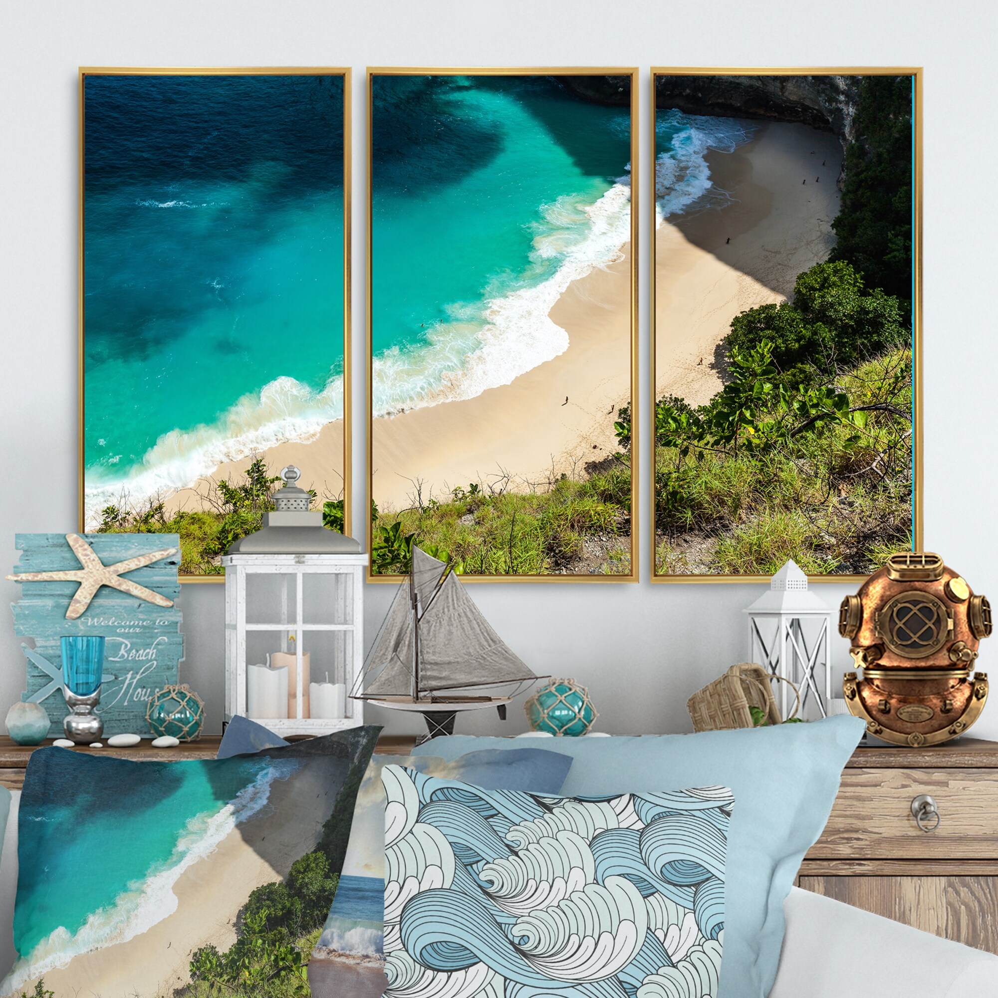 Designart "Aerial View of Tropical Beach V" Nautical & Coastal Framed Artwork Set of 3 - 4 Colors of Frames