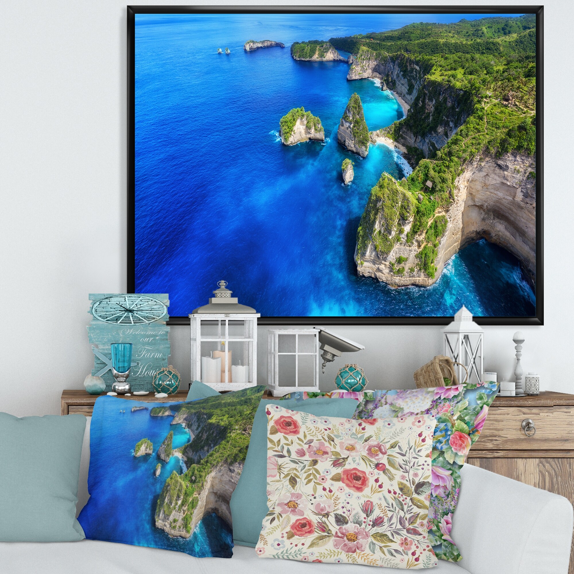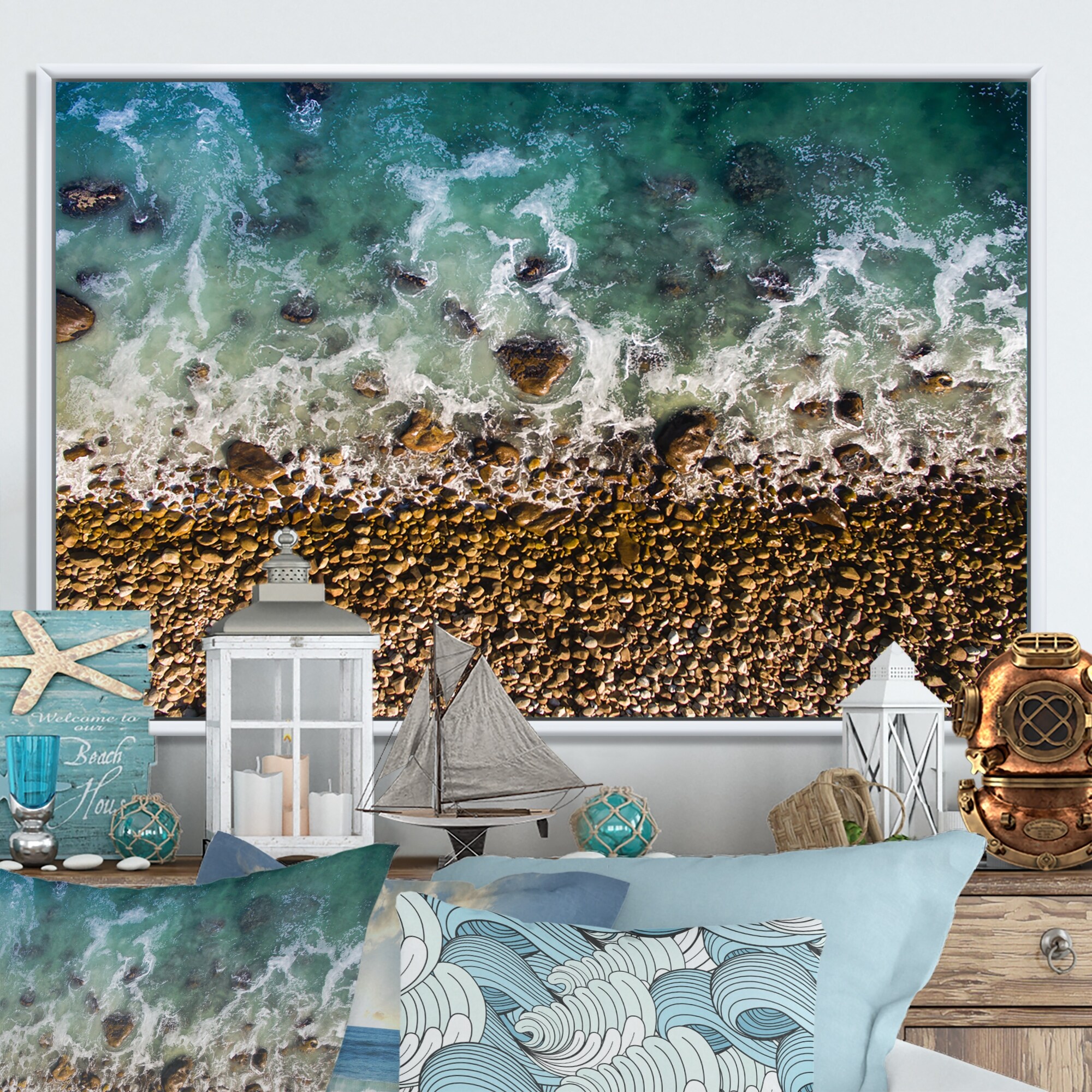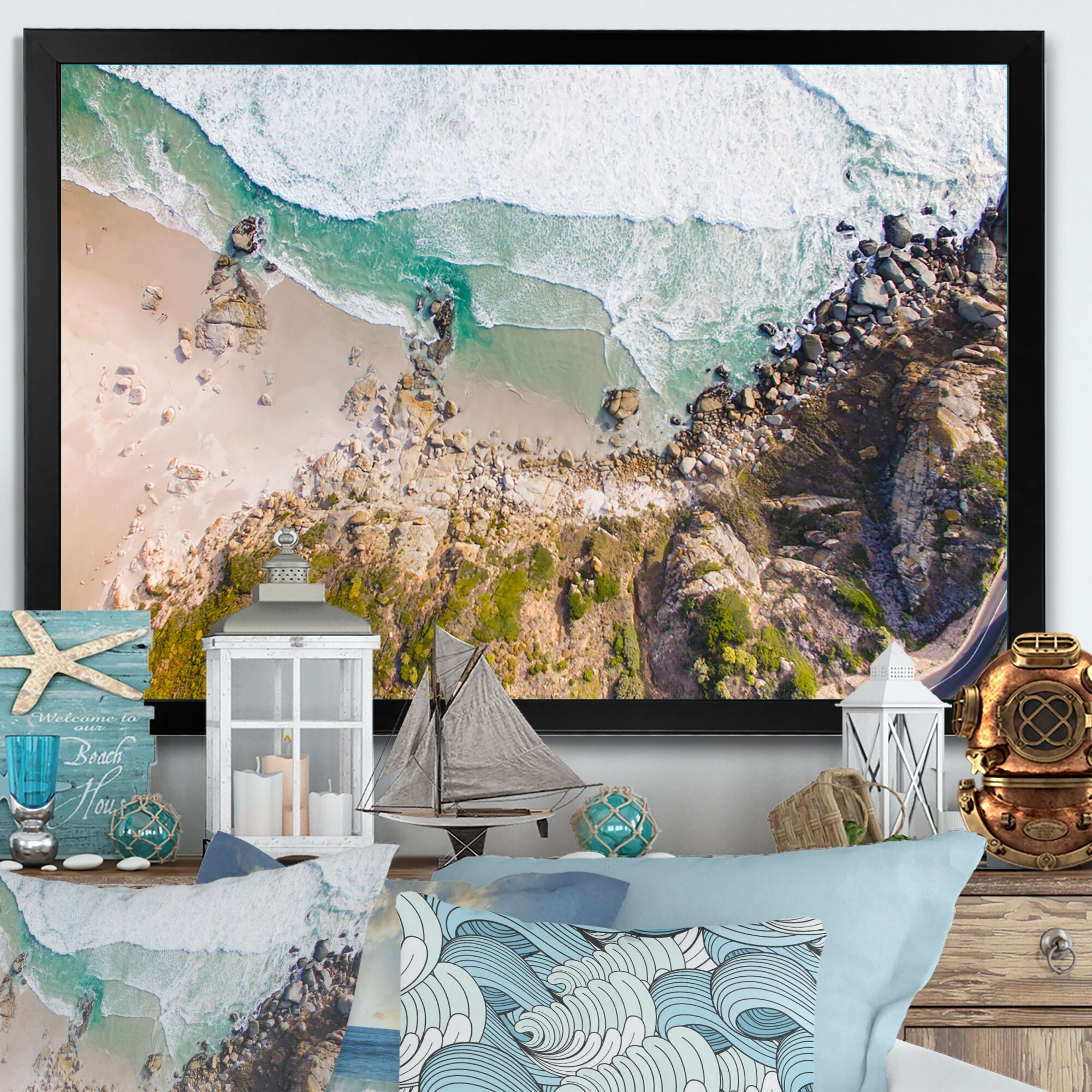 Designart "Beach Rocks And Shore Aerial View V" Nautical & Coastal Framed Wall Art