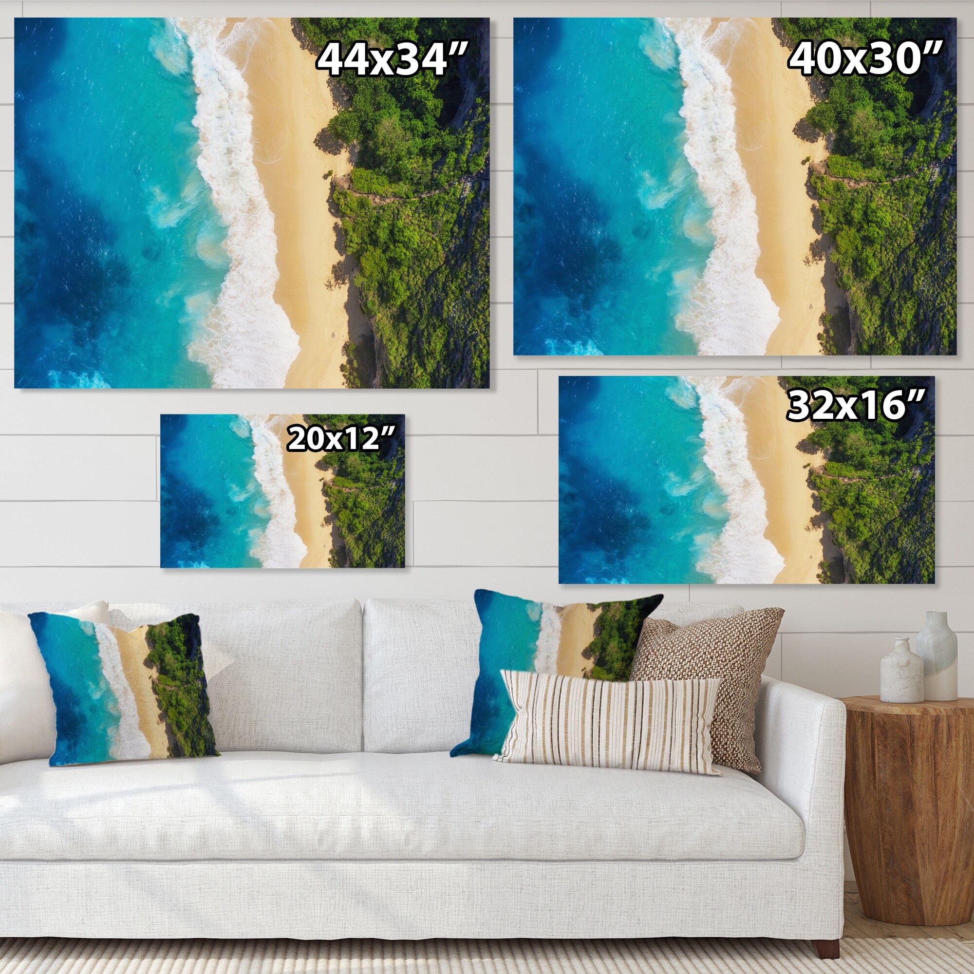 Designart "Aerial View of Sea And Turquoise Beach" Nautical & Coastal Canvas Wall Art Print