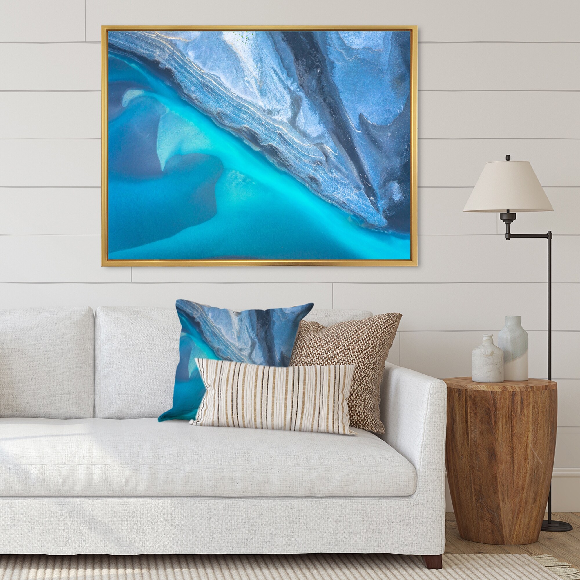 Designart "Turquoise Tropical Beach Aerial View III" Nautical & Coastal Framed Canvas Wall Art Print