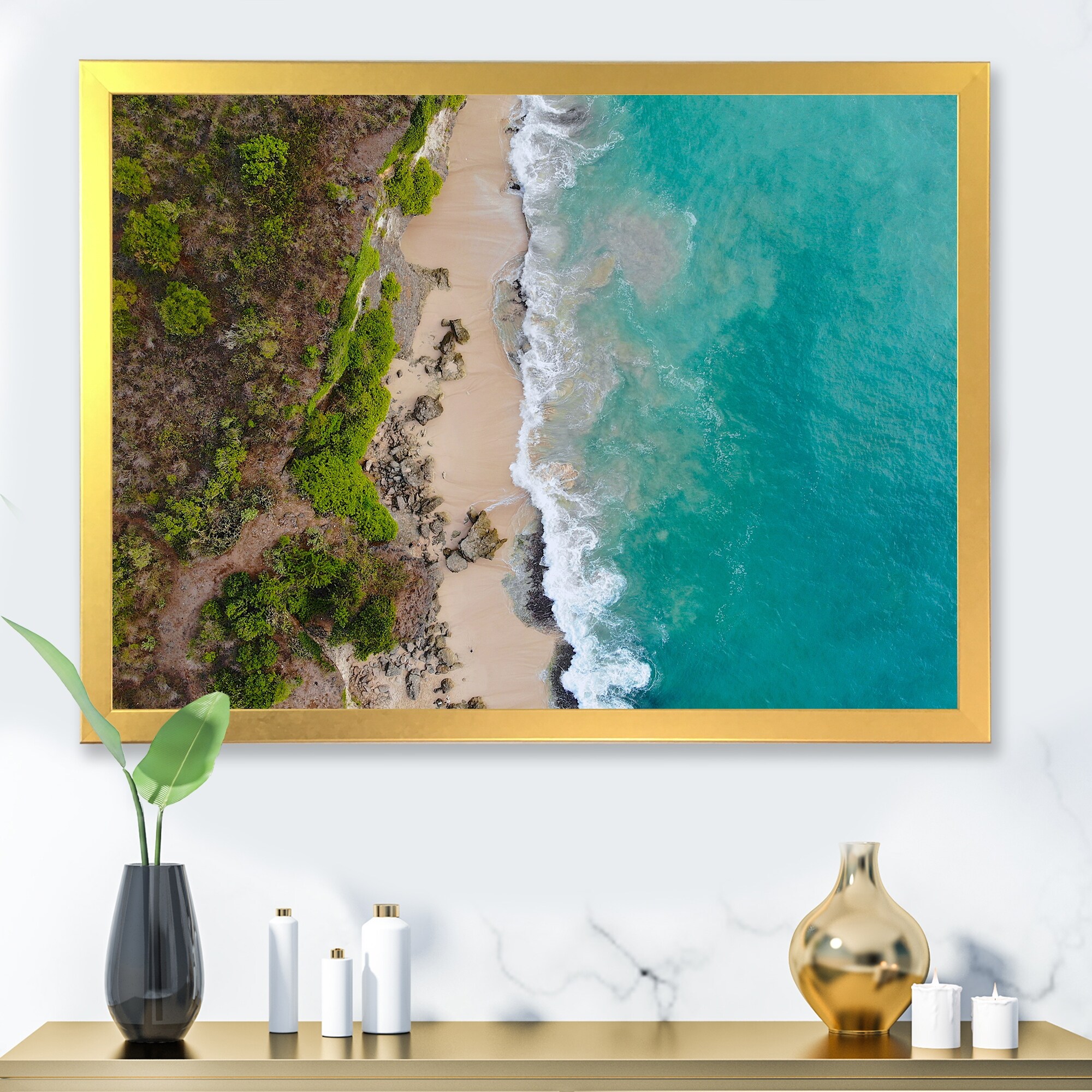 Designart "Aerial View of Tropical Beach III" Nautical & Coastal Framed Art Print