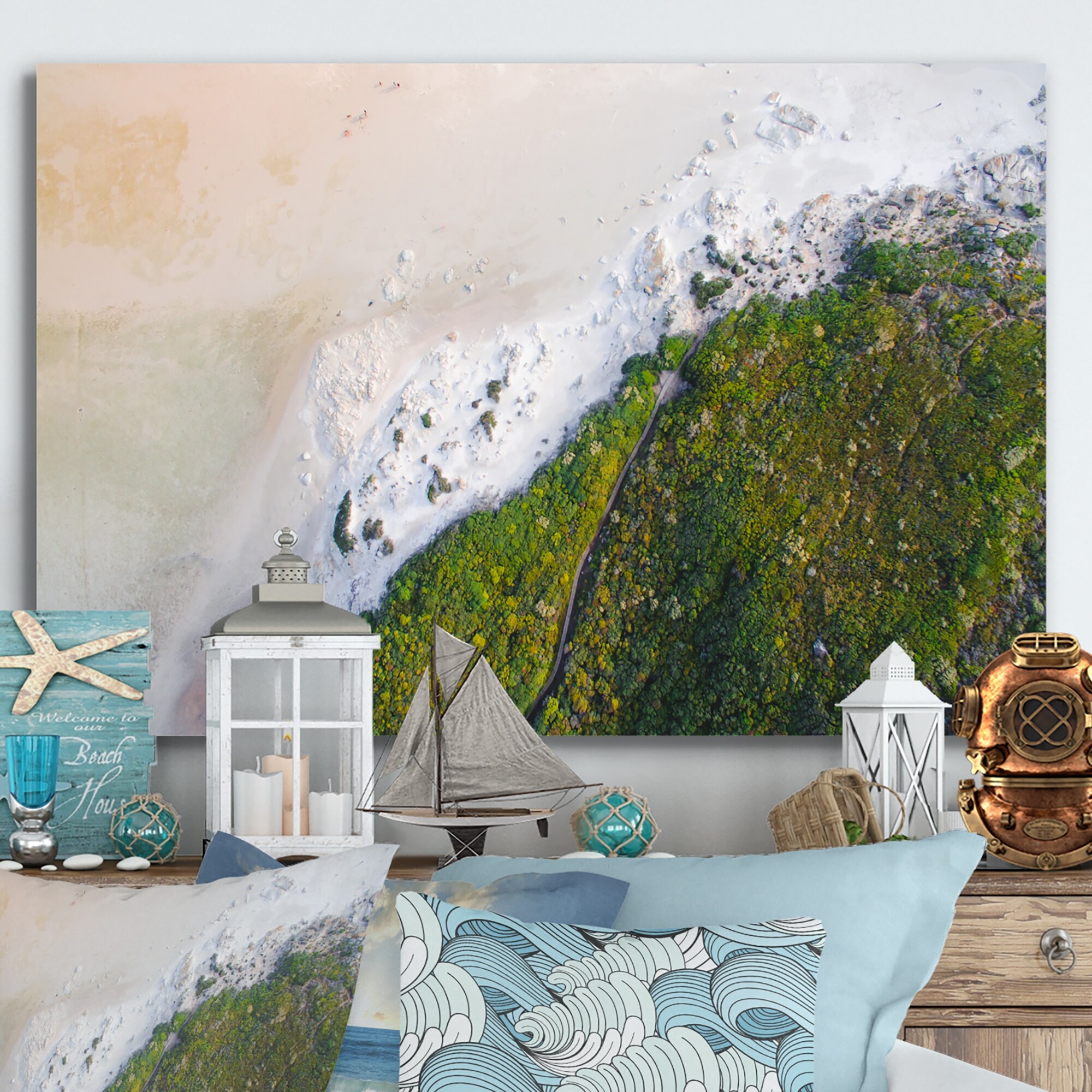 Designart "Ocean Beach Aerial View II" Nautical & Coastal Framed Canvas Art Print
