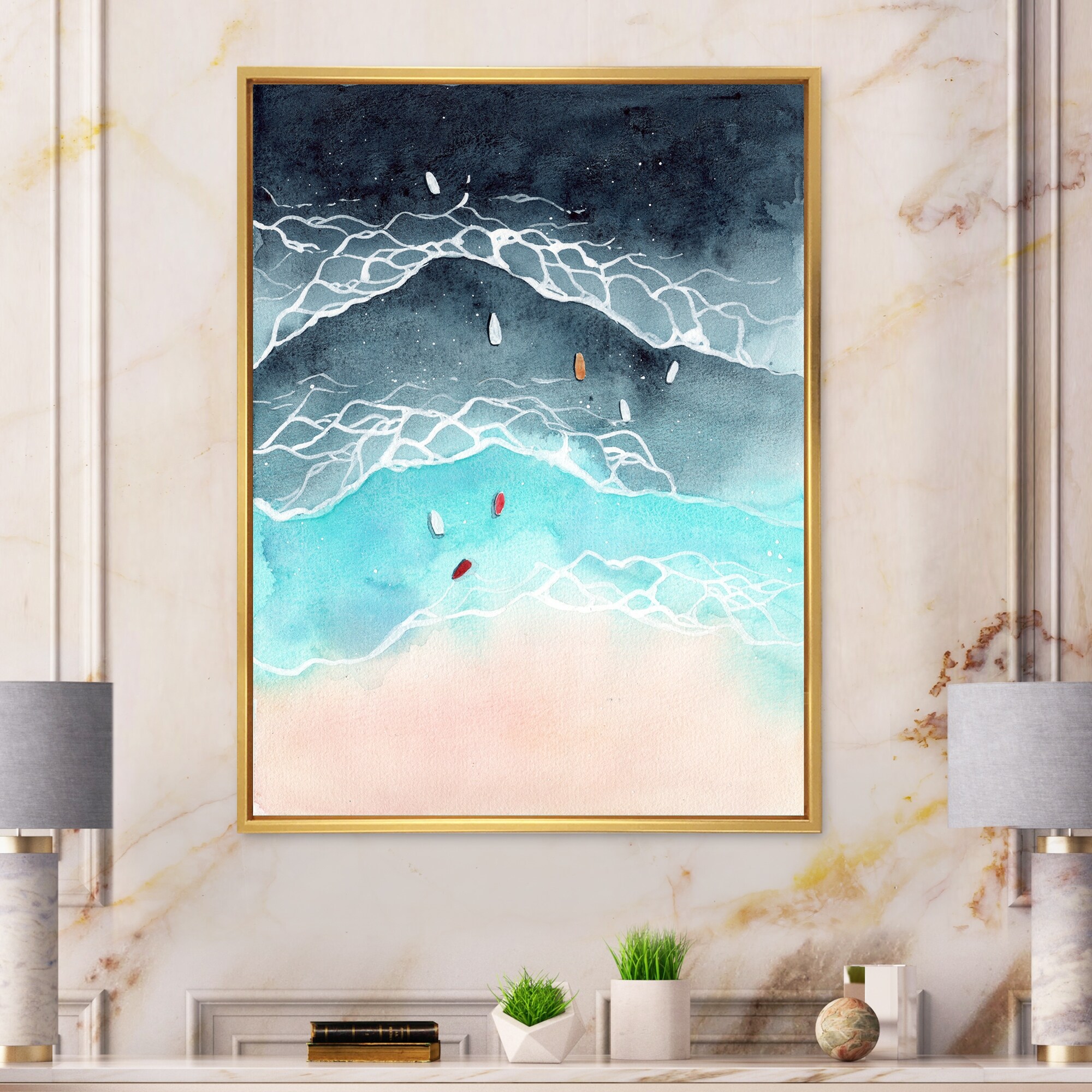 Designart "Aerial View on Tropical Ocean Waves" Nautical & Coastal Framed Canvas Wall Art Print
