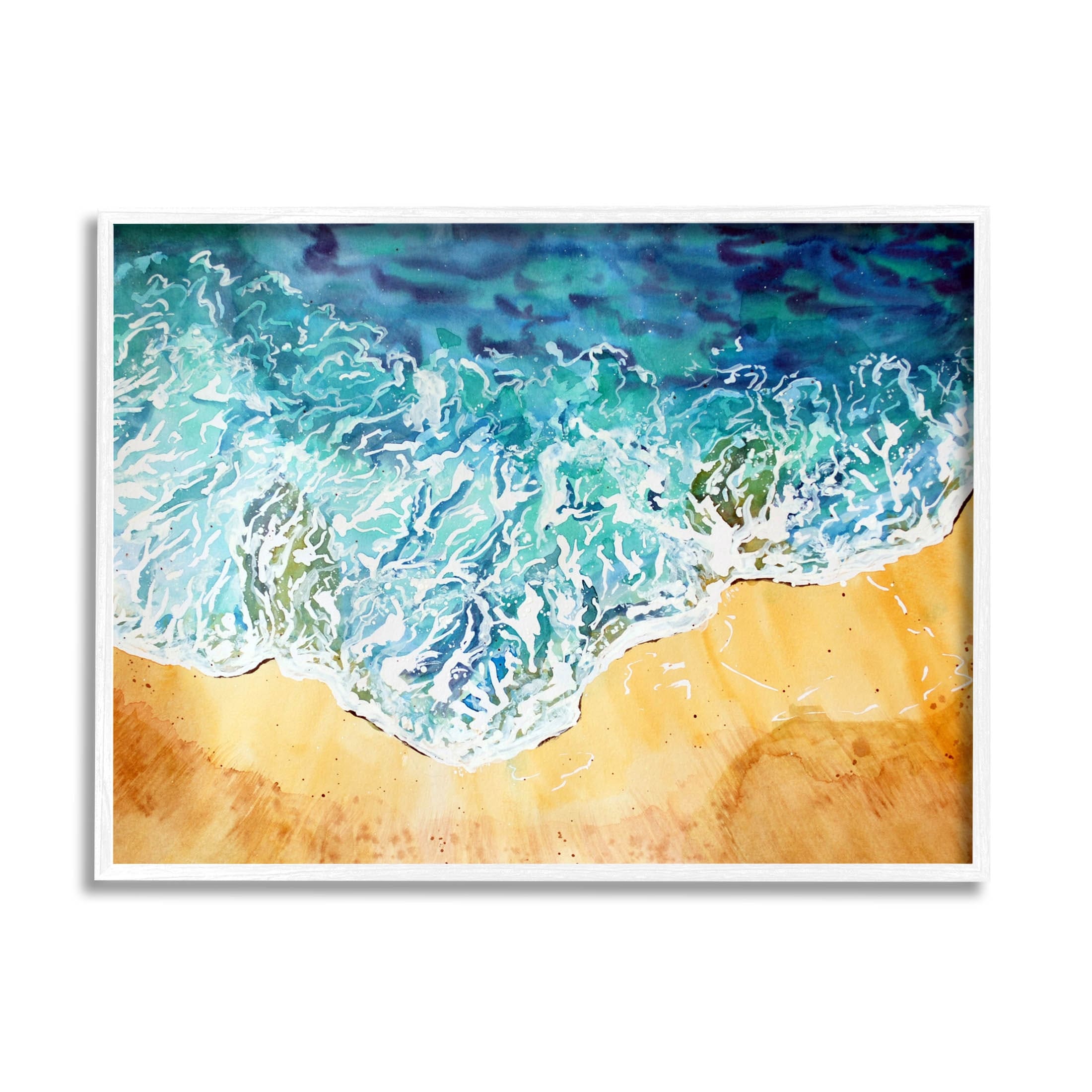 Stupell Industries Aerial Wave Splash Shore Framed Giclee Art by Sebastian Grafmann